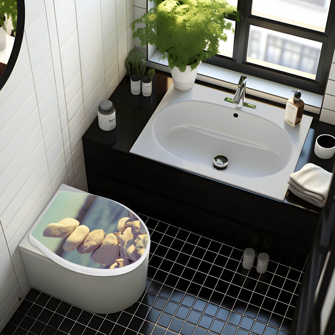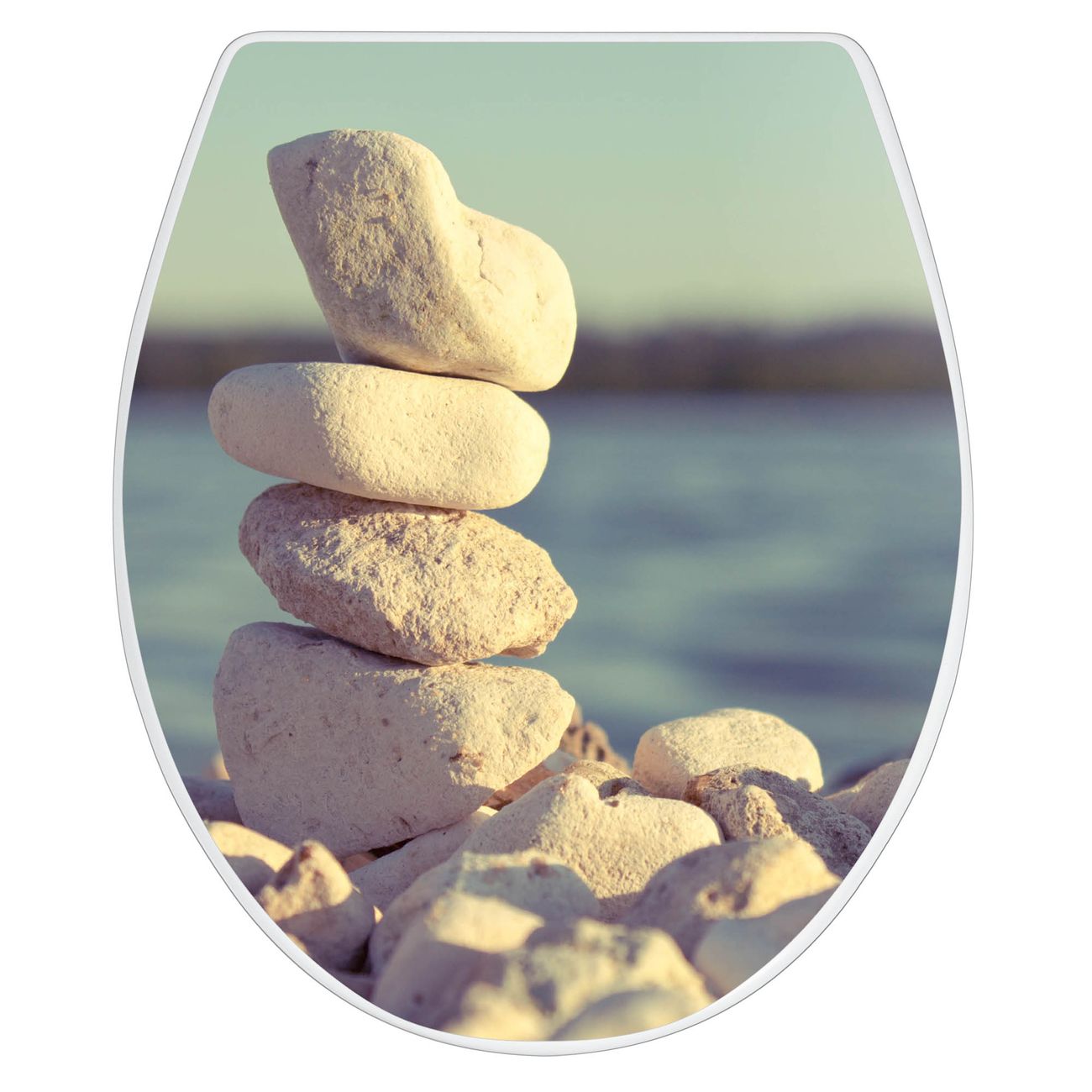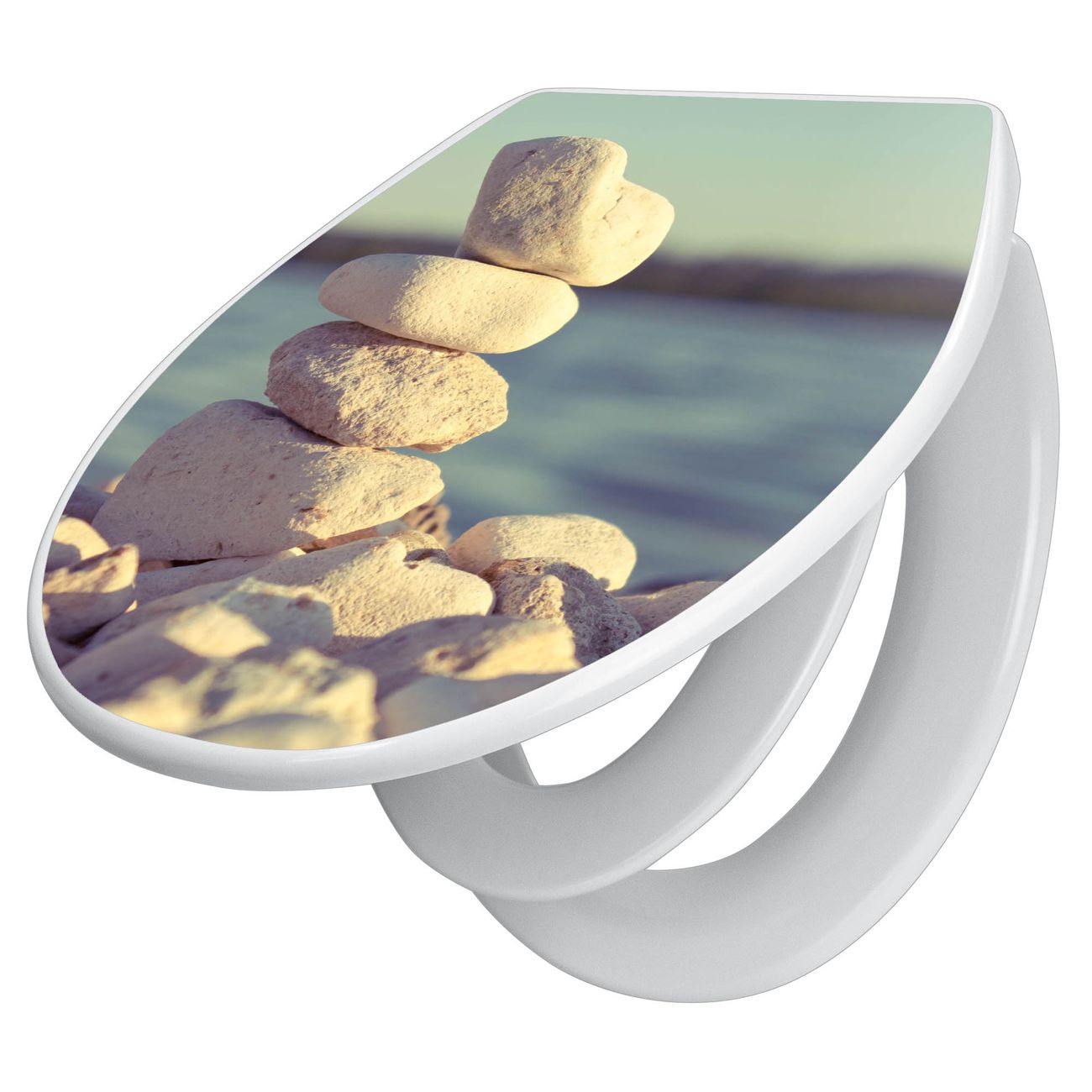 Toilettendeckel weiß mit Absenkautomatik Motiv Leichte Steine