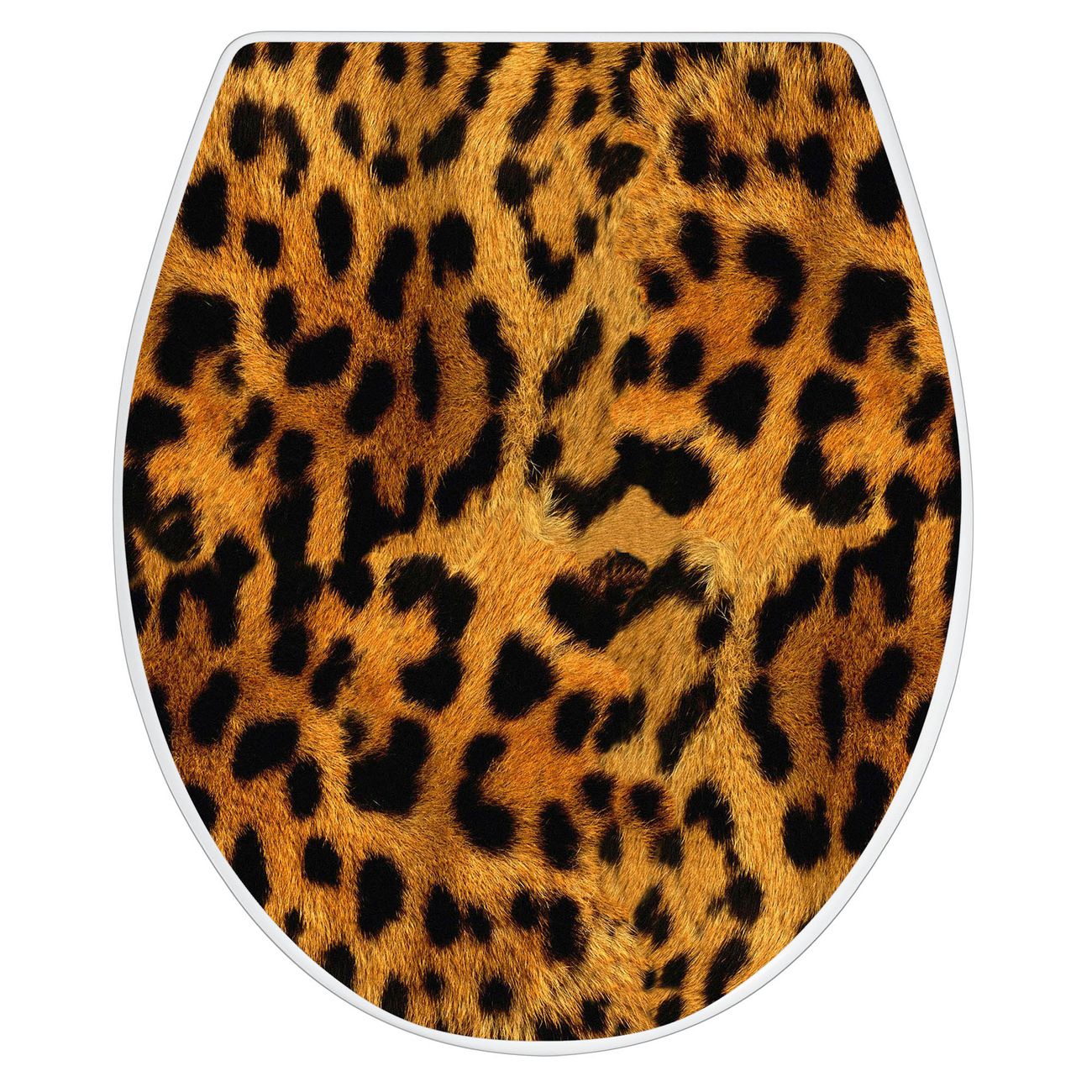 Toilettendeckel weiß mit Absenkautomatik Motiv Leopard