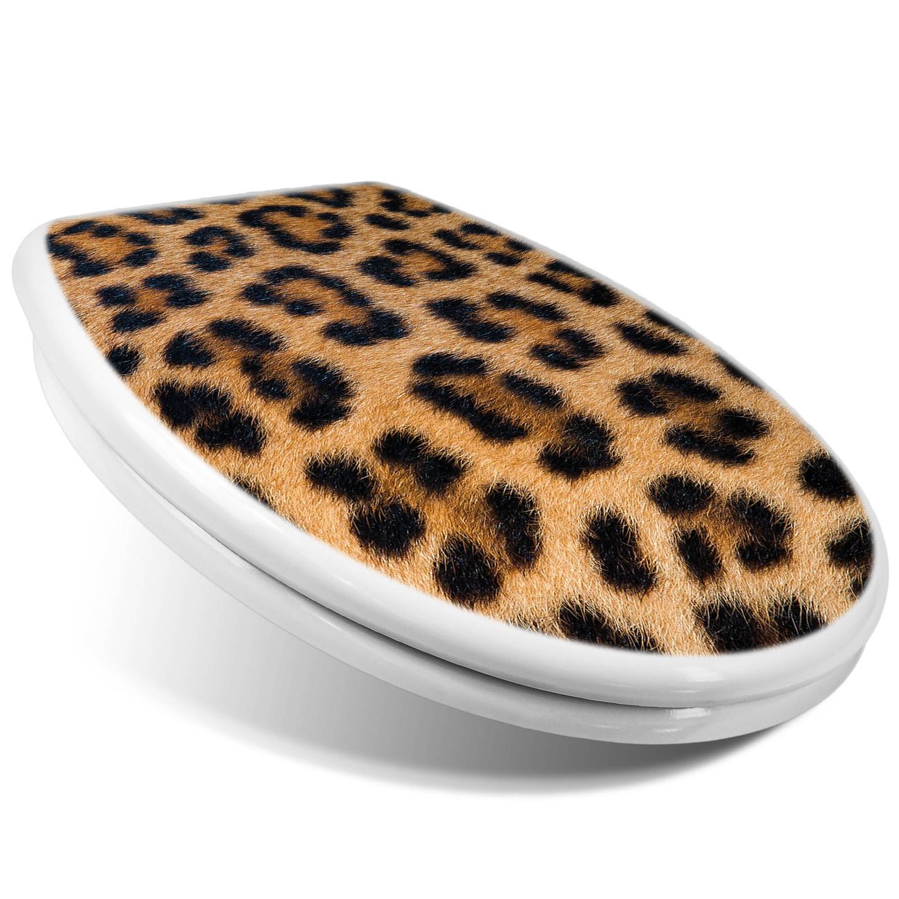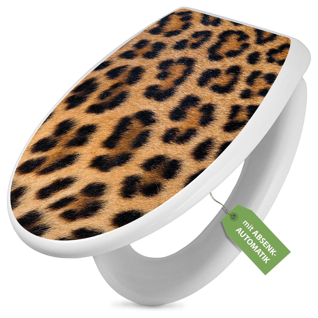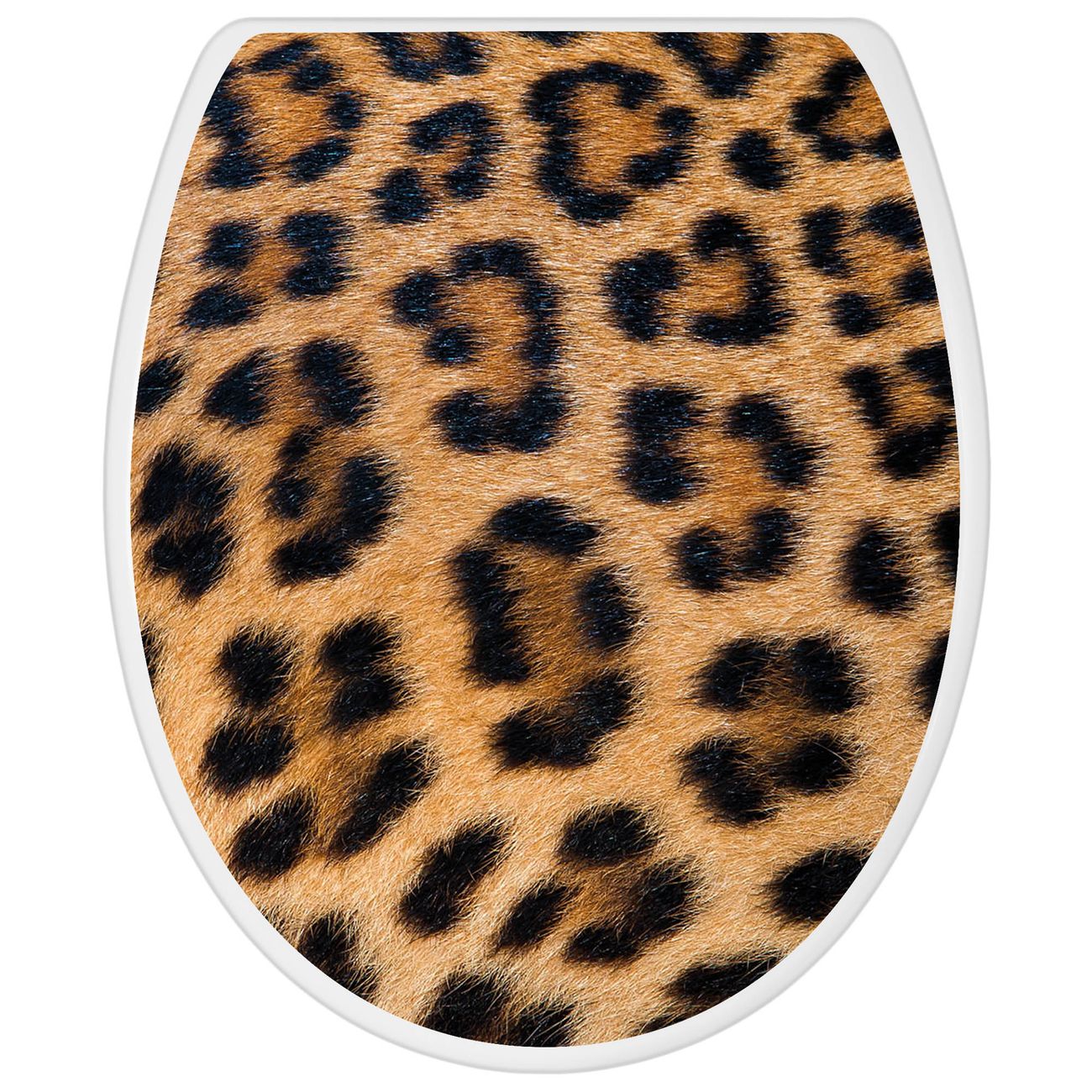 Toilettendeckel weiß mit Absenkautomatik Motiv Leopardenfell