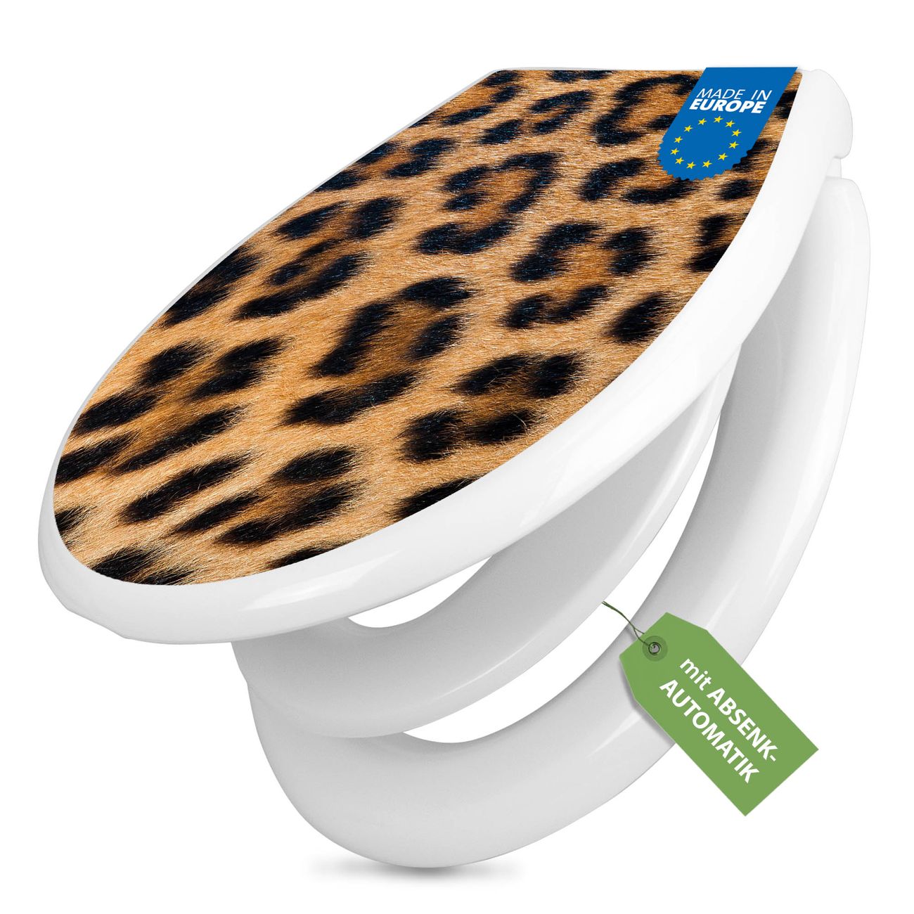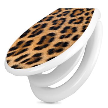 Toilettendeckel weiß mit Absenkautomatik Motiv Leopardenfell