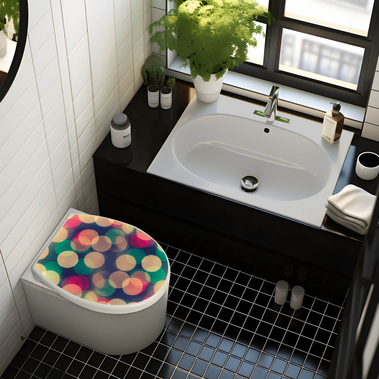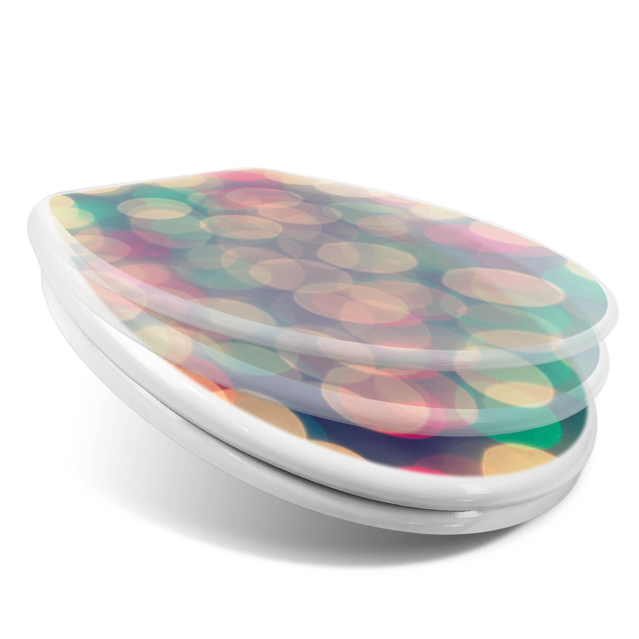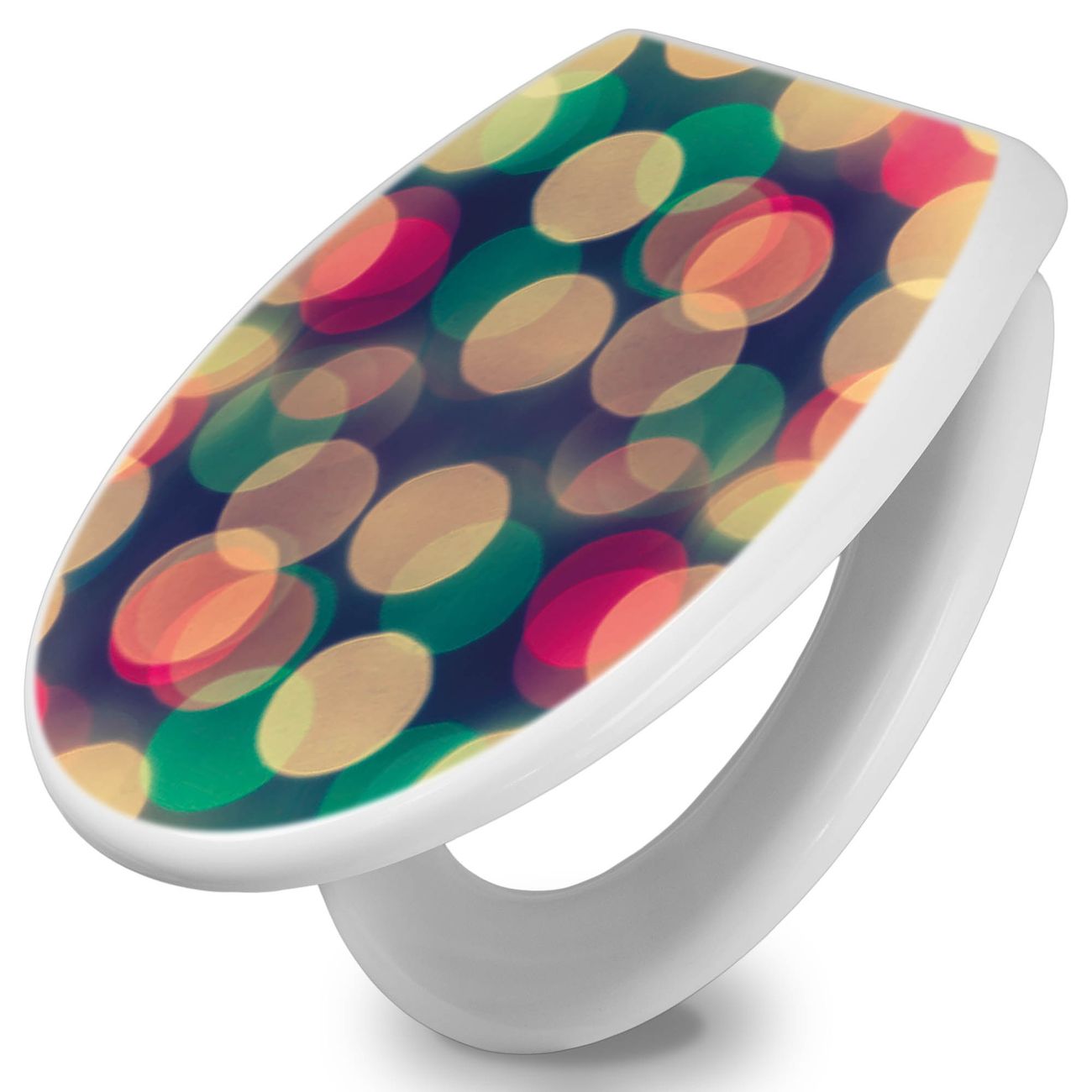 Toilettendeckel weiß mit Absenkautomatik Motiv Lichtpunkte Weiß Grün Rot