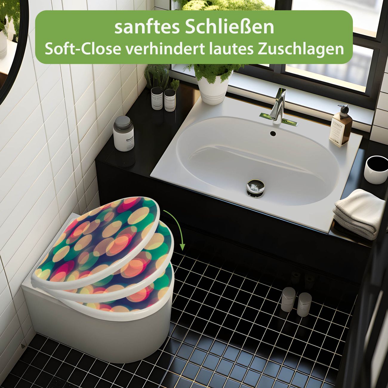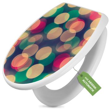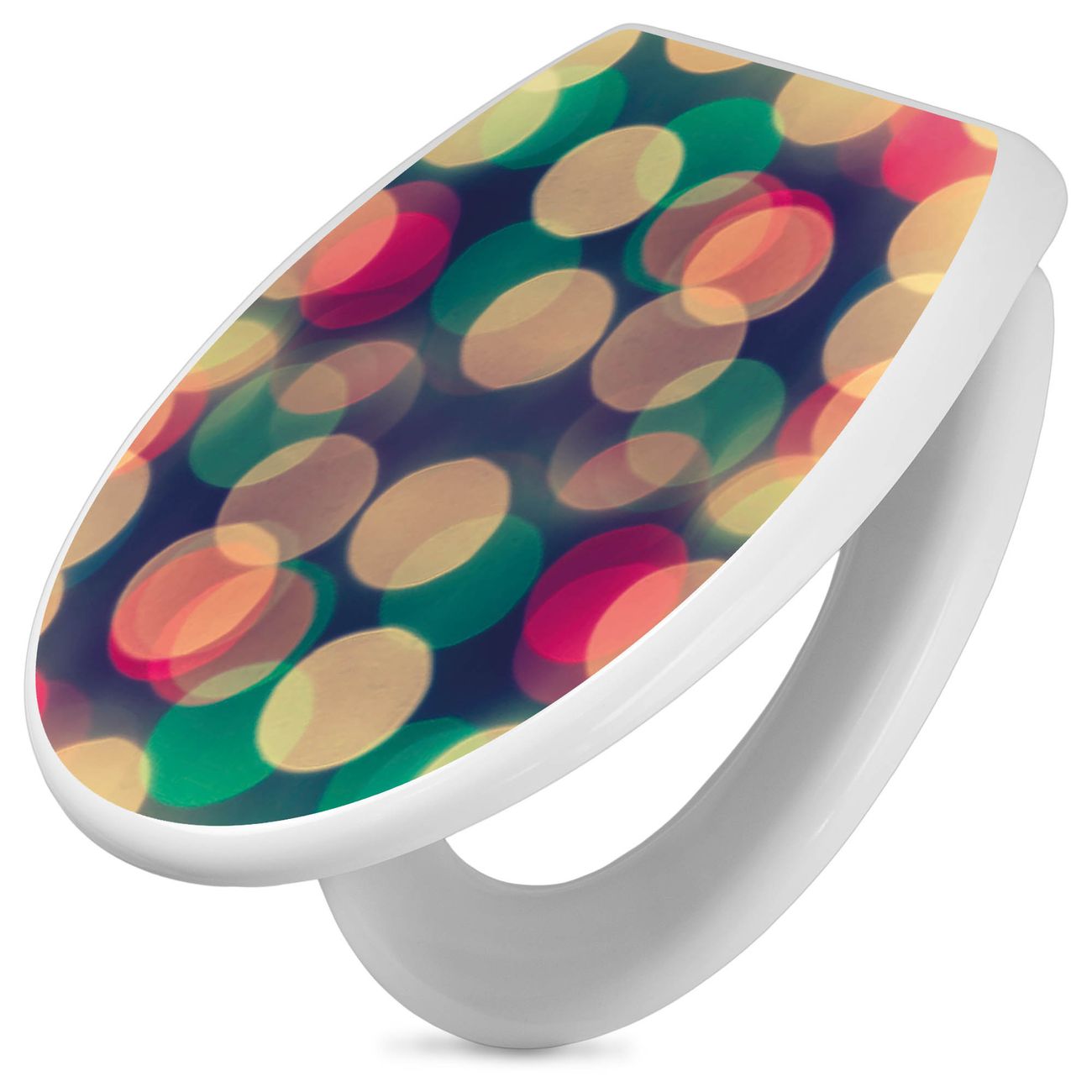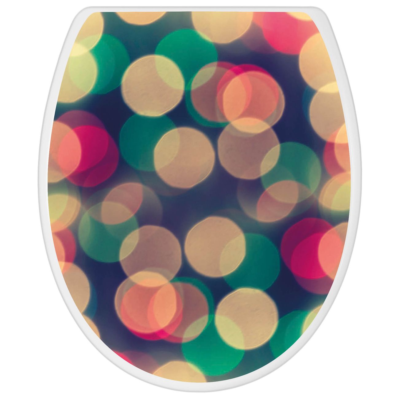 Toilettendeckel weiß mit Absenkautomatik Motiv Lichtpunkte Weiß Grün Rot
