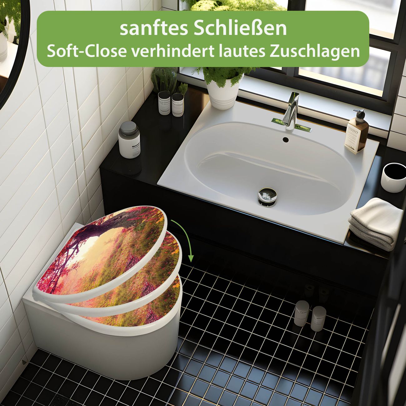 Toilettendeckel weiß mit Absenkautomatik Motiv Lichtung Im Herbst