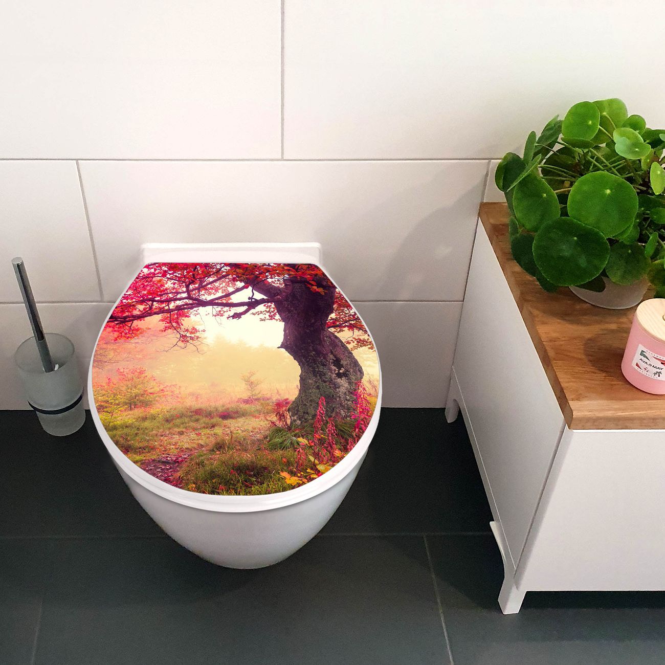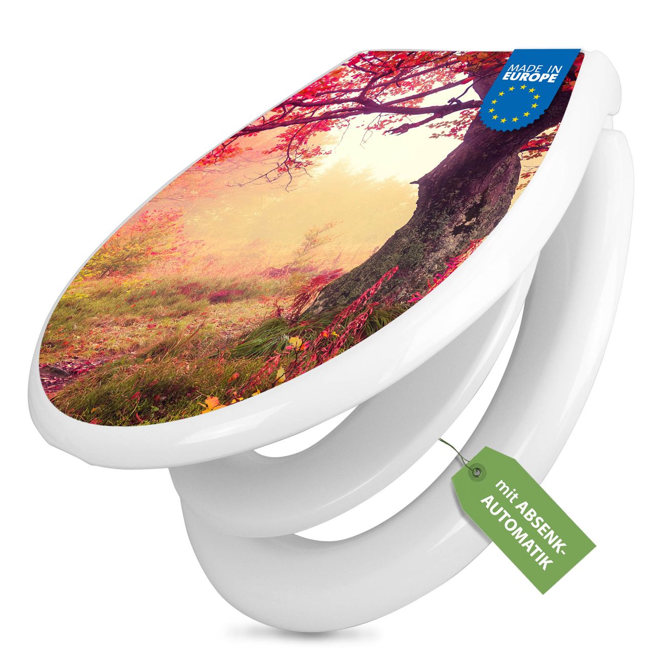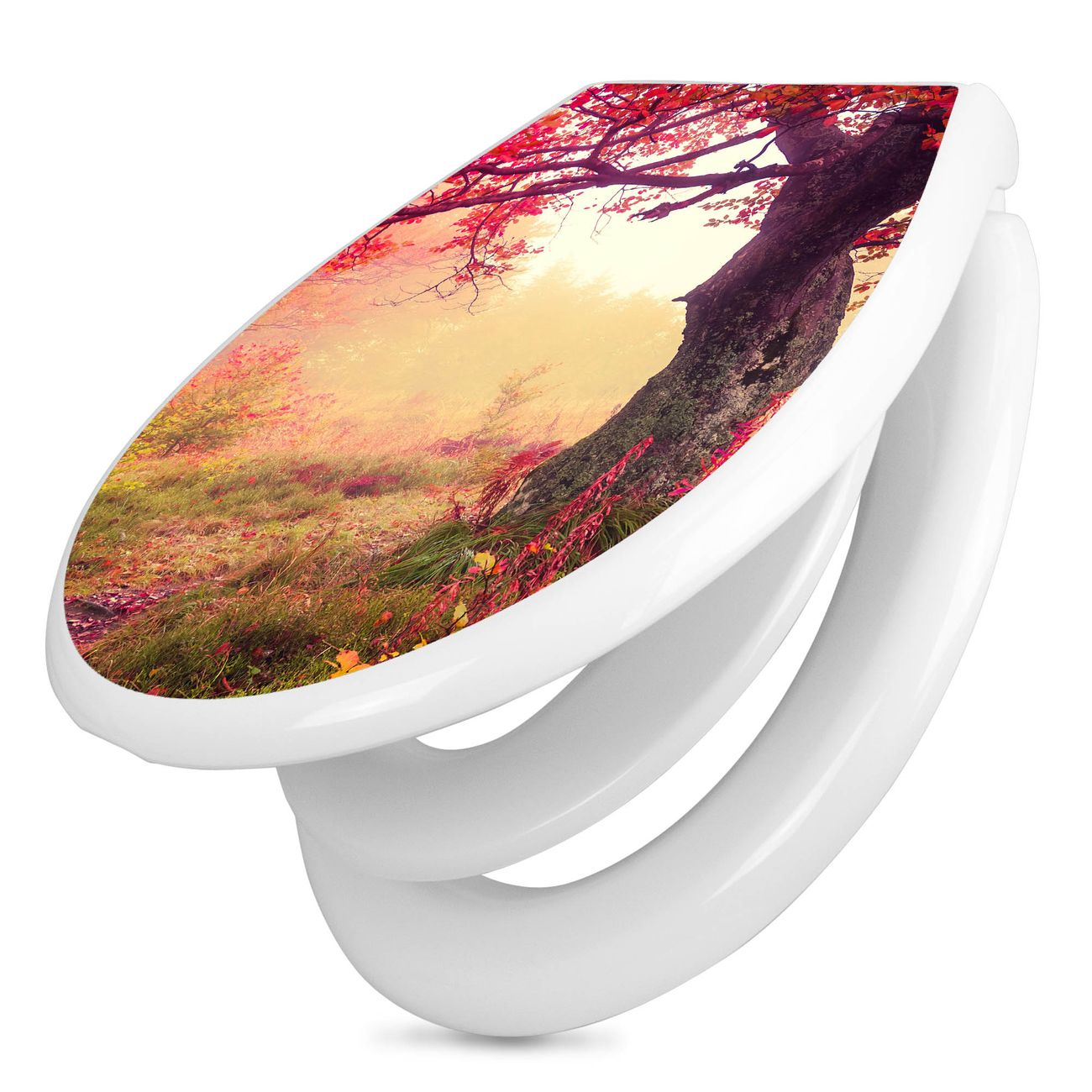 Toilettendeckel weiß mit Absenkautomatik Motiv Lichtung Im Herbst