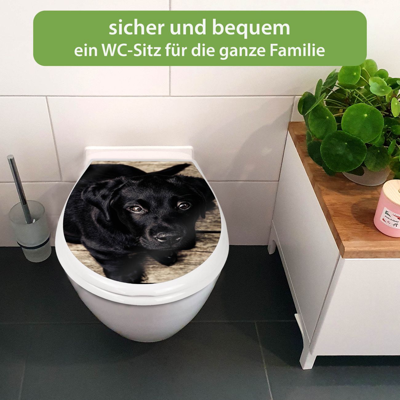 FUNKTION:Mit dem banjado Familien WC Sitz mit Absenkautomatik und dem Motiv Motiv Lieselotte verbinden Sie Design mit Funktionalität. Sie erhalten den Toilettendeckel in bewährt guter Qualität mit Montagematerial passend auf alle Euro-WC-Becken. Die Gesamtgröße beträgt 37,1cm x 44,9cm x 5cm, die Grundfarbe ist weiß.</p> DESIGN:Der Klodeckel in weiß mit Motiv Motiv Lieselotte hat eine ansprechende Optik, eine besondere Form und ist sehr stabil. Das Motiv besteht aus einer farbbrillianten Motivfolie, die durch ein Schutzlaminat zusätzlich vor Kratzern schützt. Der integrierte Kindersitz fügt sich harmonisch ein. DETAILS:Der Toilettensitz mit Soft Close besteht aus hochwertigem Polypropylen, ist geruchlos, ungiftig und kann mit handelsüblicher Seife gereinigt werden. Die Montage kann von von oben oder von unten erfolgen und ist kinderleicht. NUTZEN:Mit Hilfe der detaillierten Aufbauanleitung ermöglichen wir eine schnelle und unkomplizierte Montage. Die banjado Klobrille ist universell geeignet für alle Euro-WC-Schüsseln. Der Kindersitz kann unkompliziert entfernt werden. BANJADO:Ihr WC-Deckel wird in Sachsen in einer kleinen Manufaktur von Hand veredelt. Die Motivfolie ist lösungsmittelfrei und schutzlaminiert für einen langen Halt. Wir wünschen viel Freude bei der Auswahl eines schönen Motivs.
