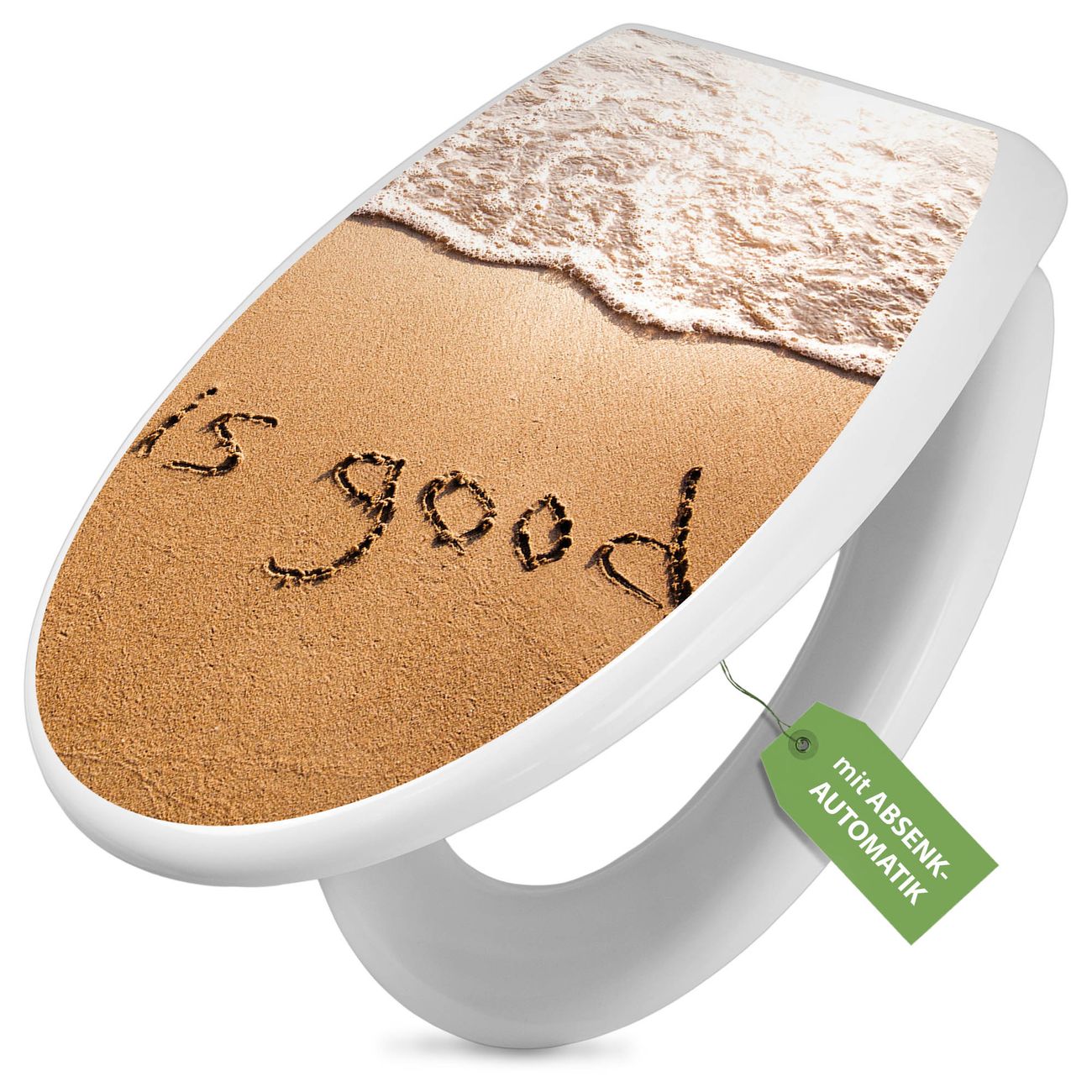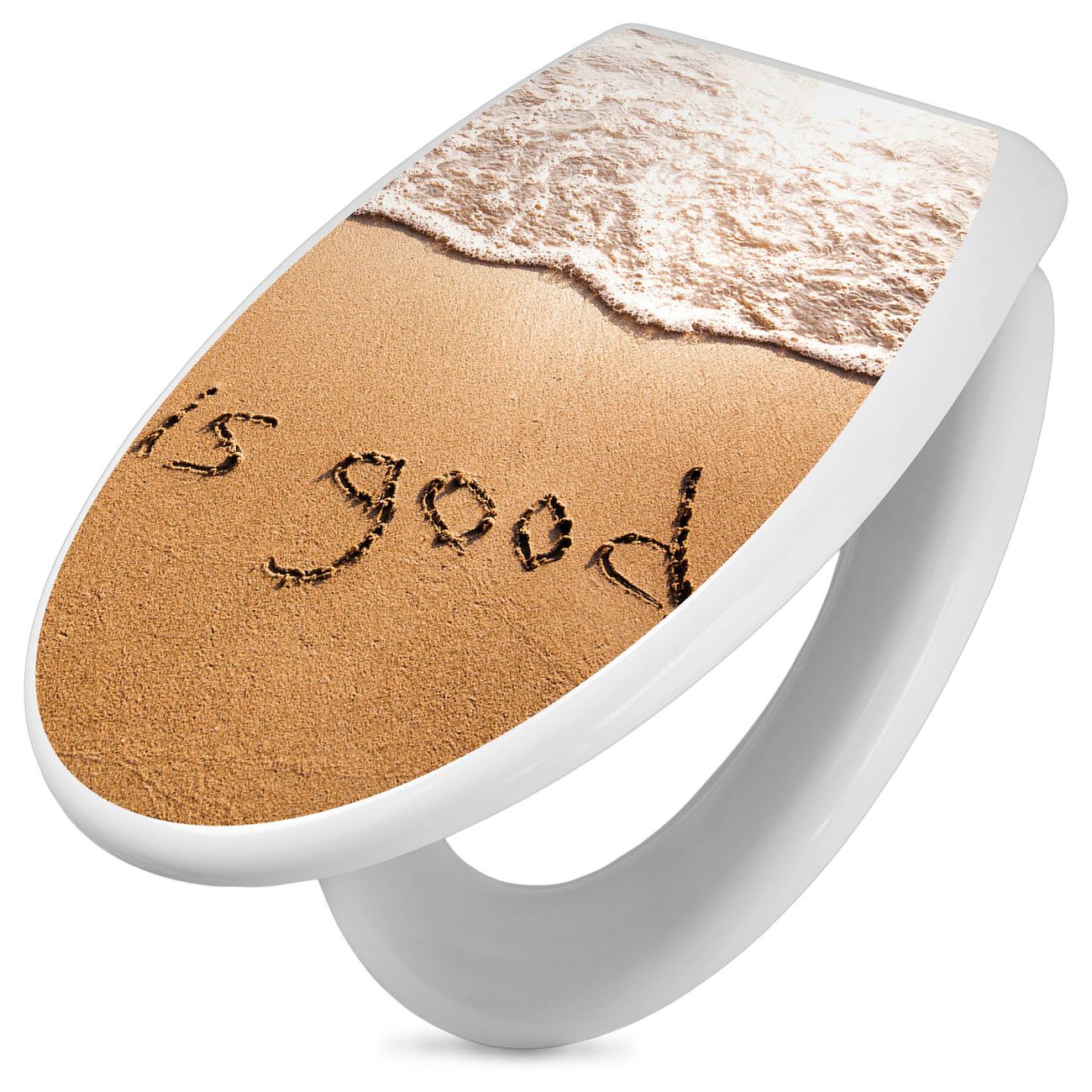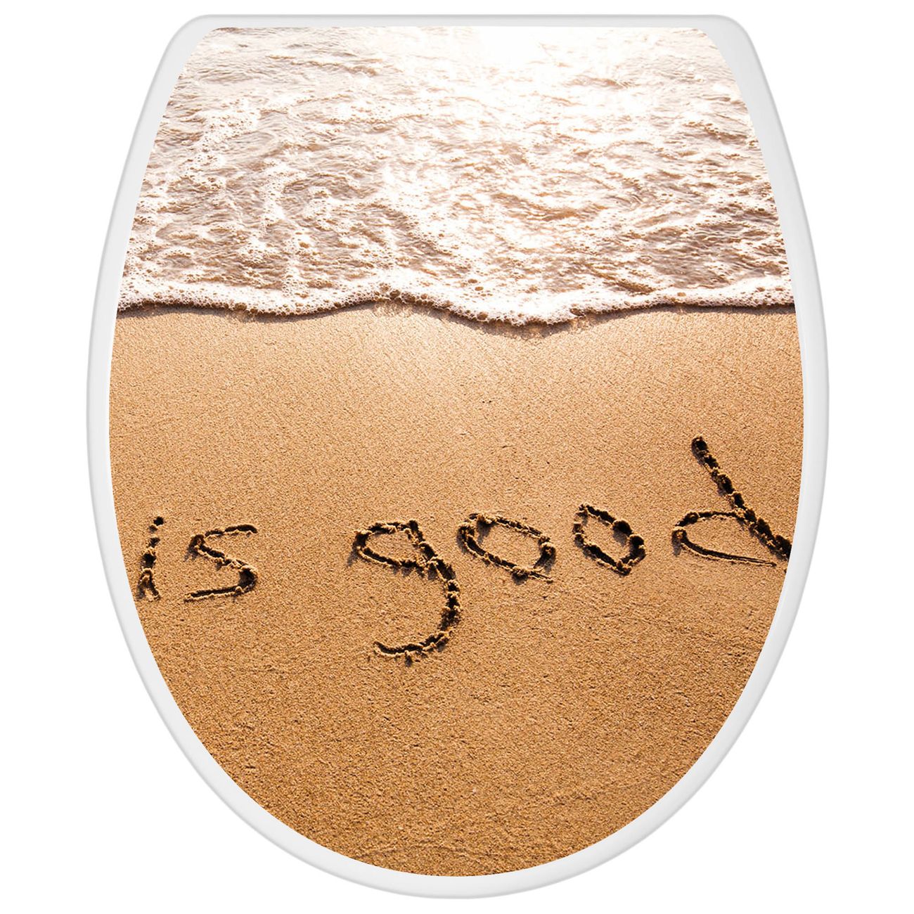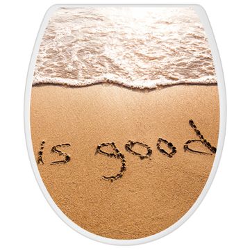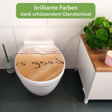 Toilettendeckel weiß mit Absenkautomatik Motiv Strand Text