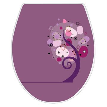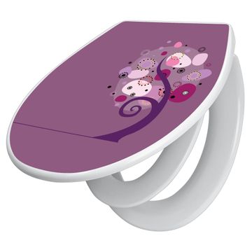 Toilettendeckel weiß mit Absenkautomatik Motiv Lila Baum