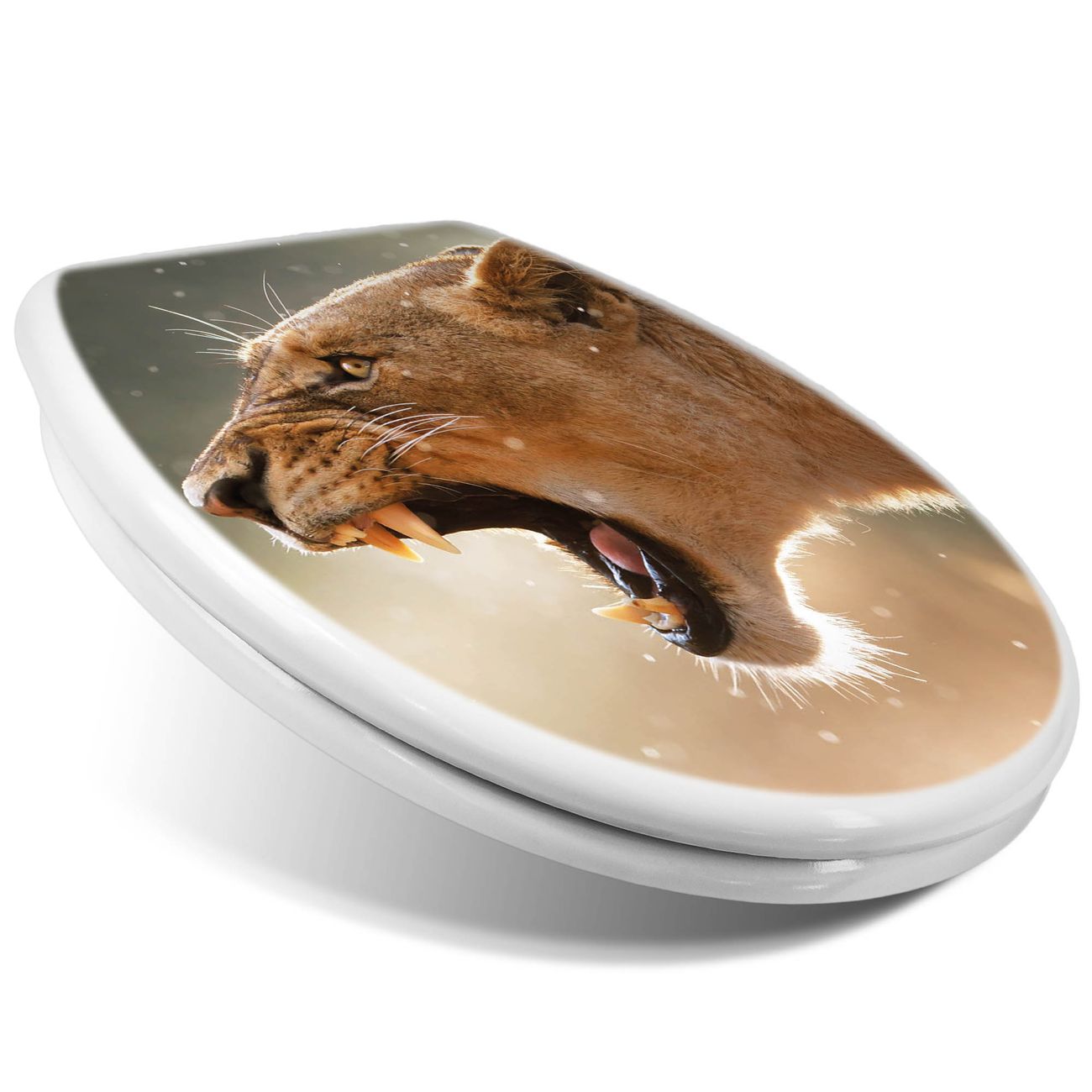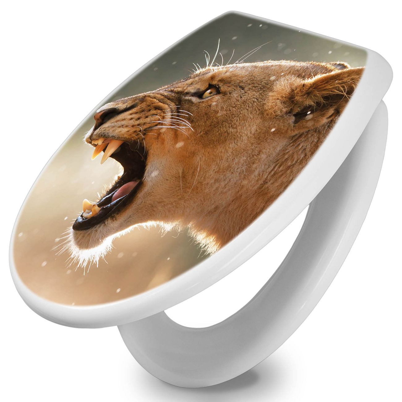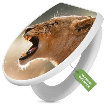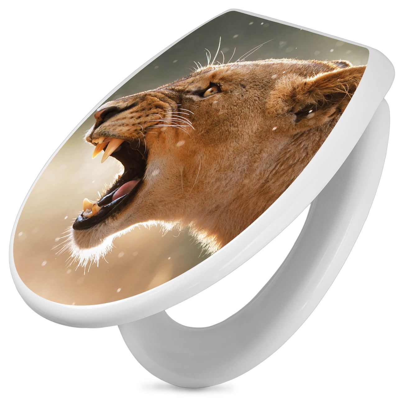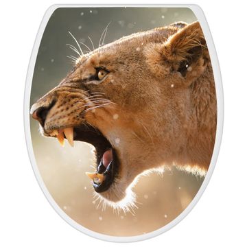 Toilettendeckel weiß mit Absenkautomatik Motiv Löwin