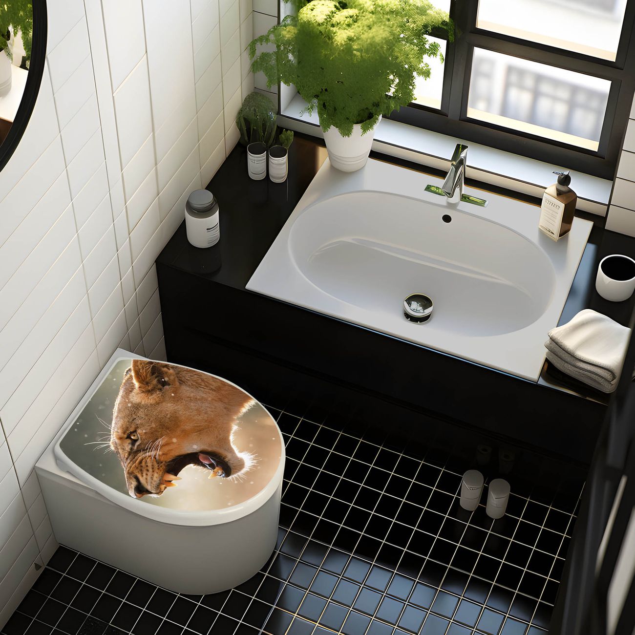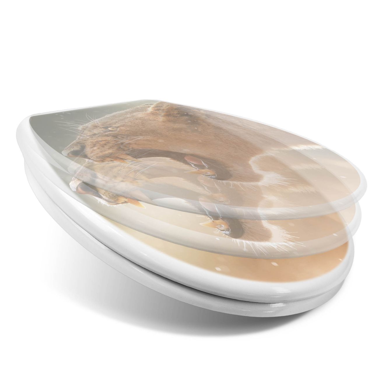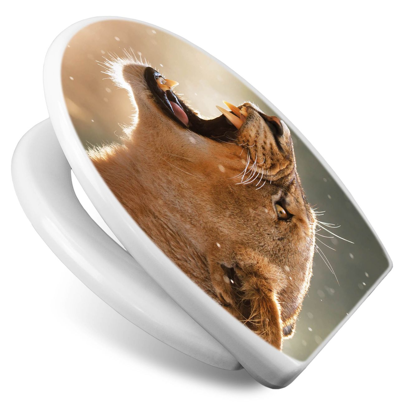 Toilettendeckel weiß mit Absenkautomatik Motiv Löwin