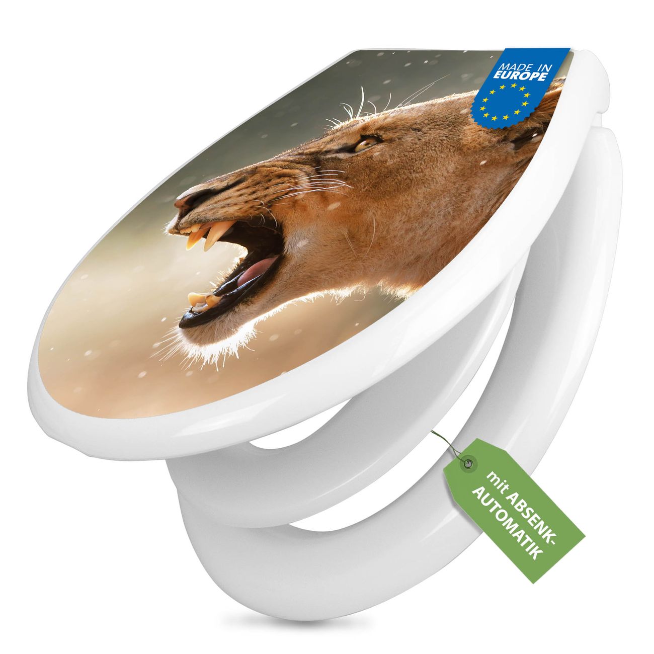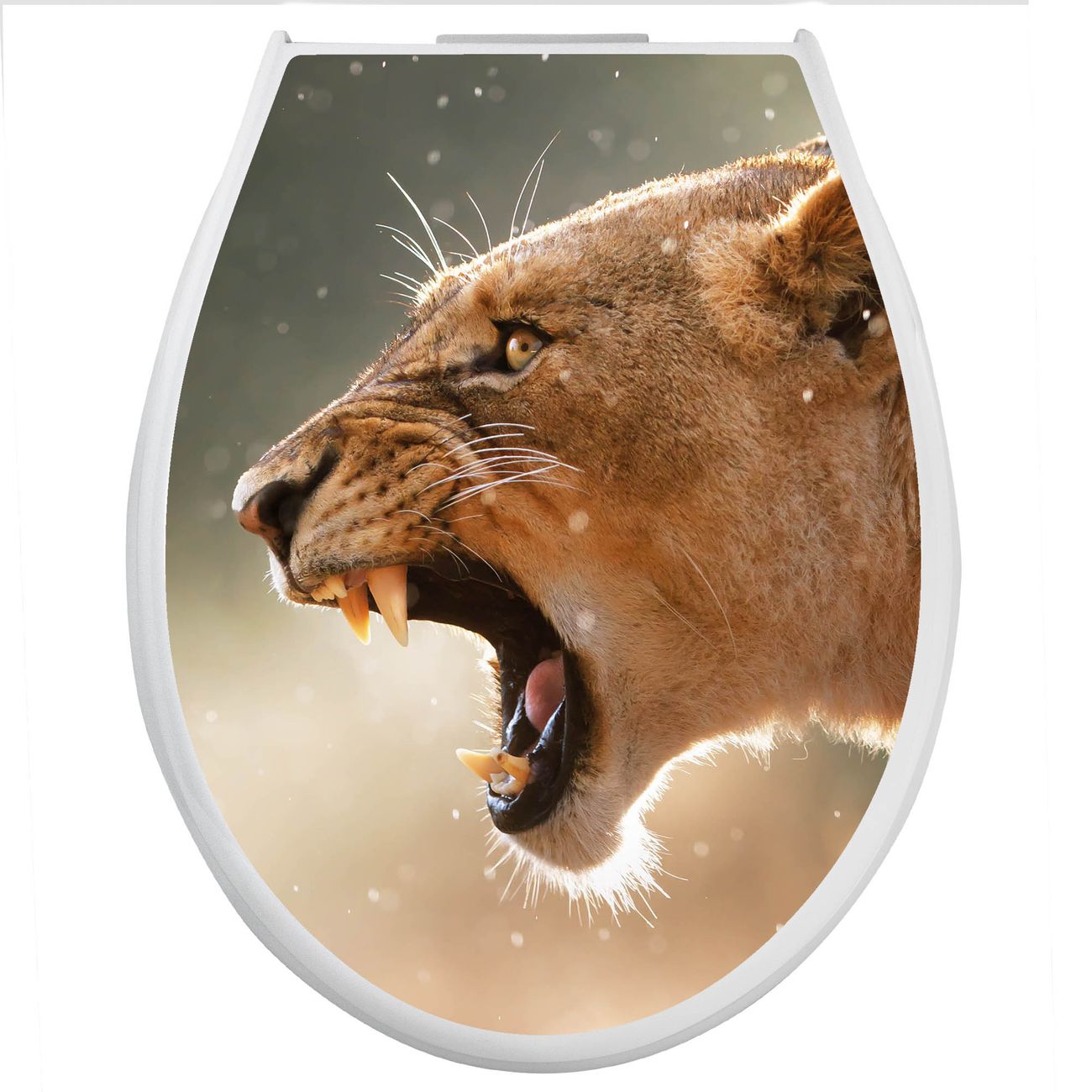 Toilettendeckel weiß mit Absenkautomatik Motiv Löwin