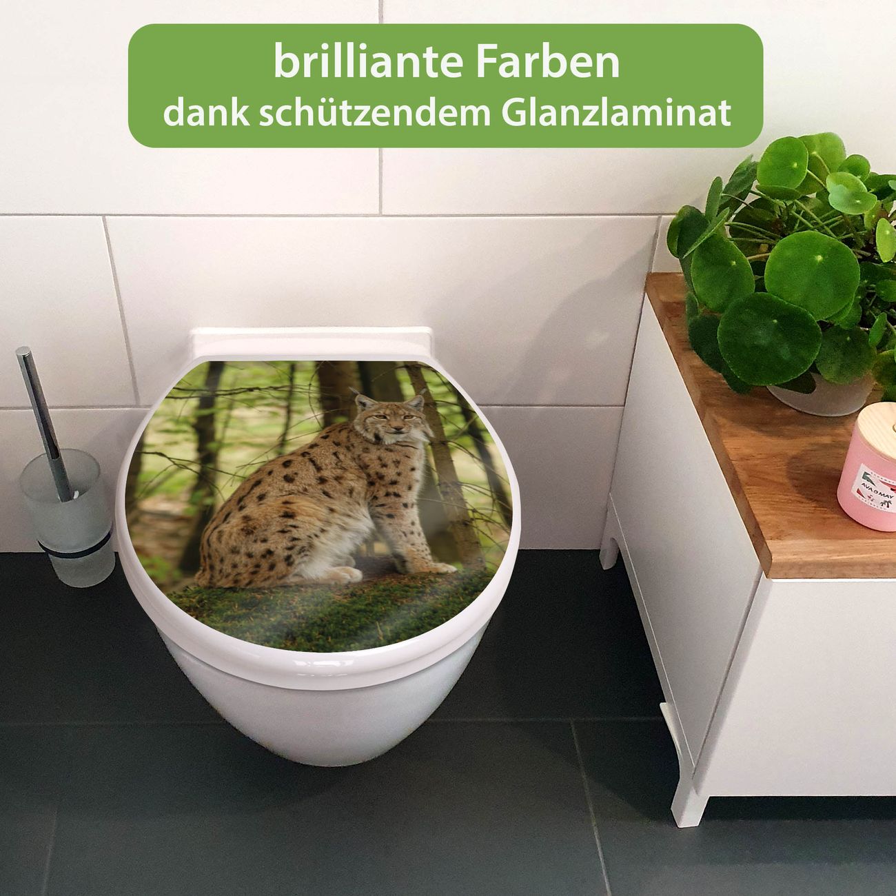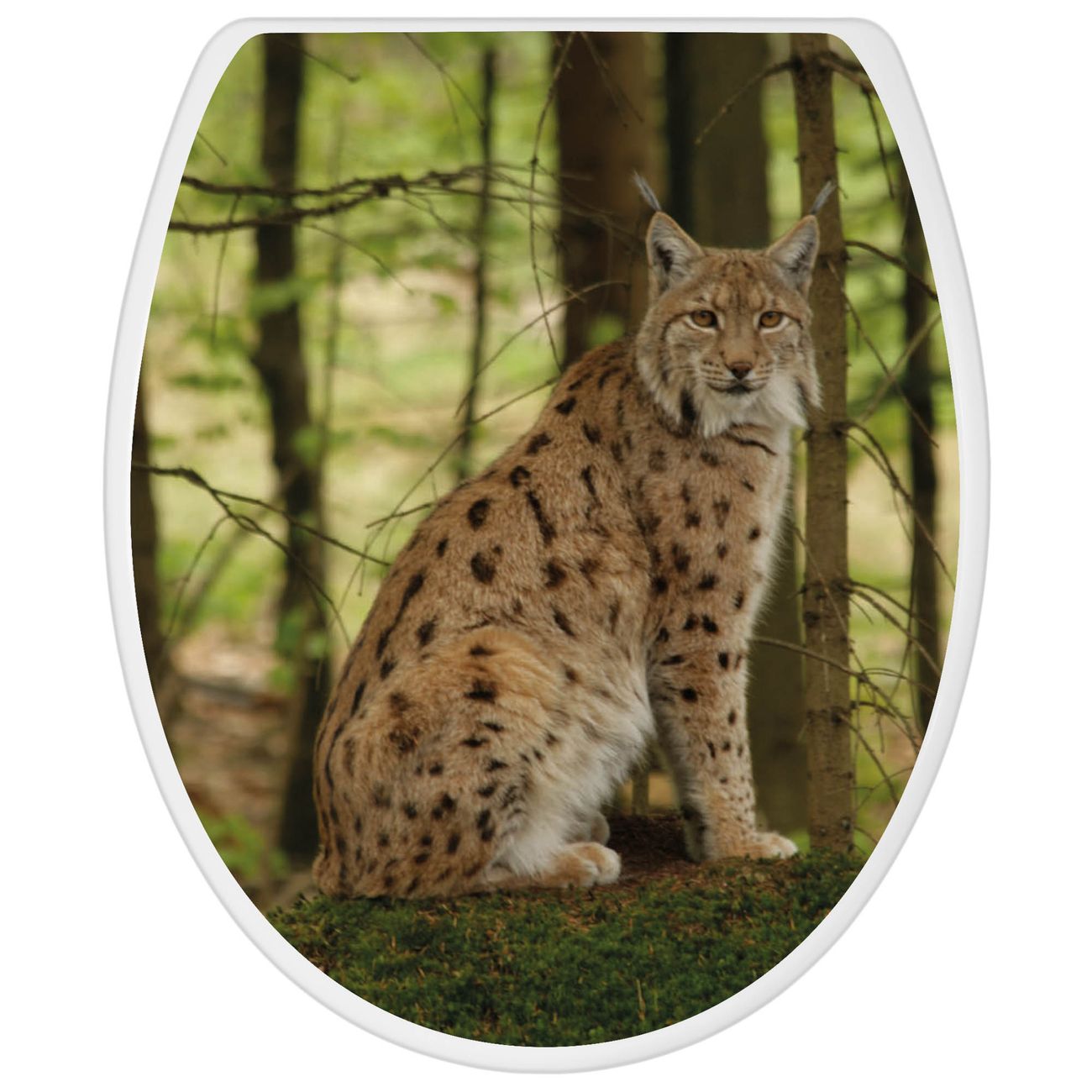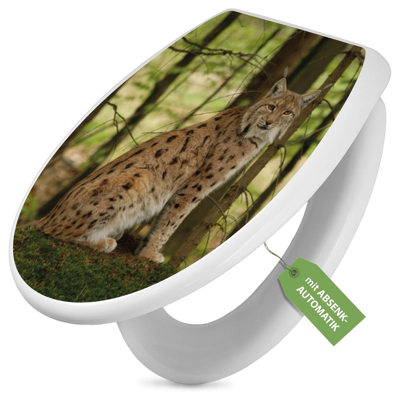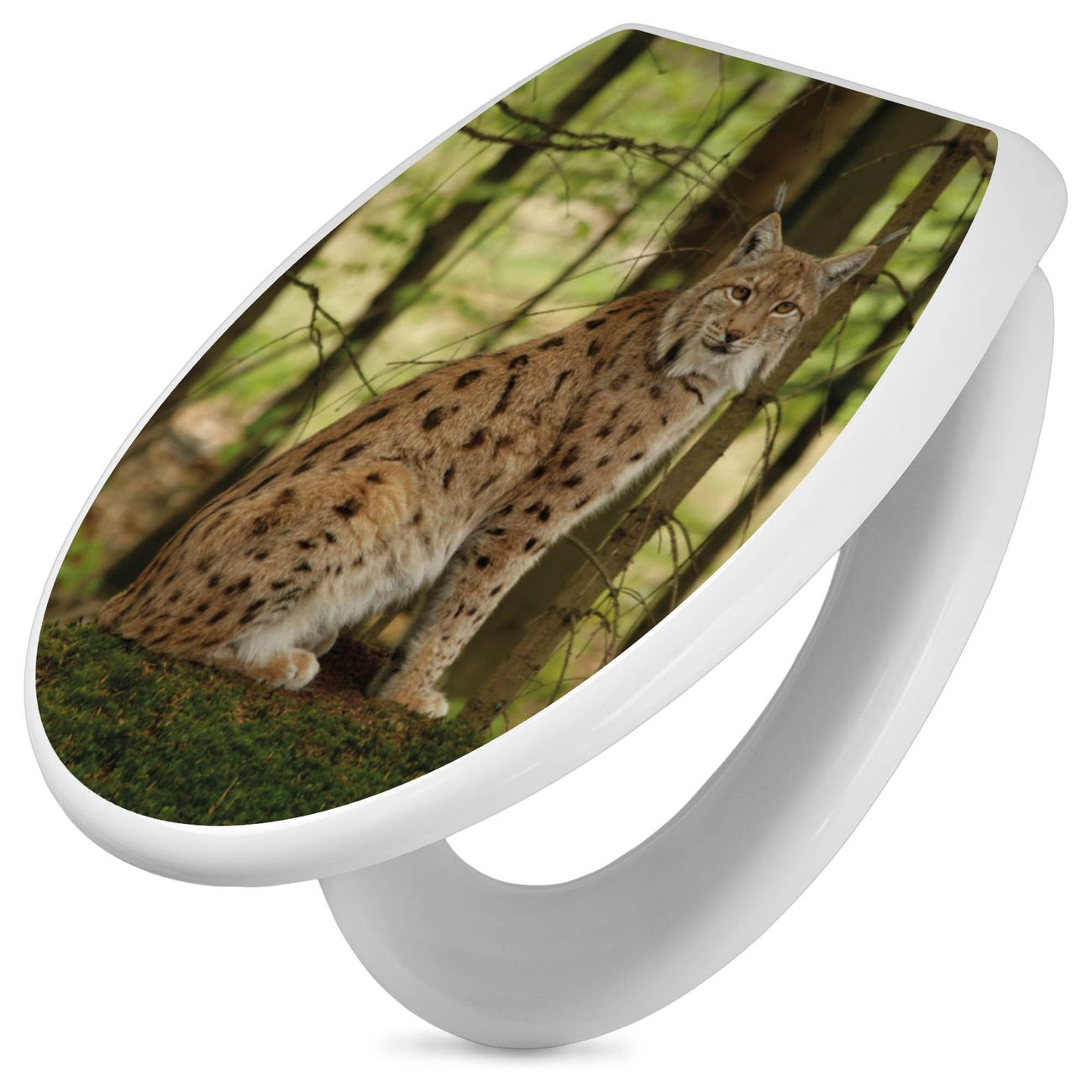 Toilettendeckel weiß mit Absenkautomatik Motiv Luchs