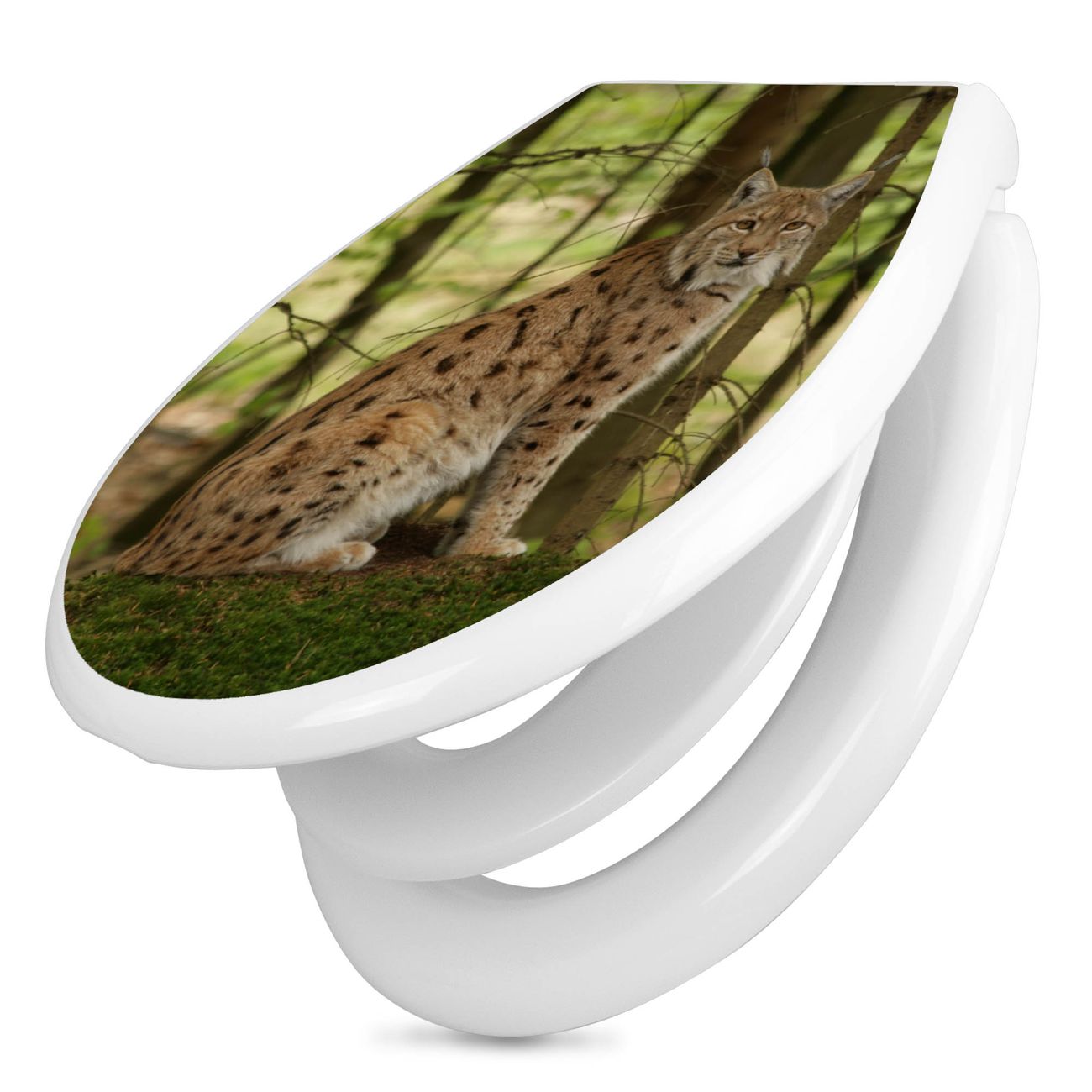Toilettendeckel weiß mit Absenkautomatik Motiv Luchs