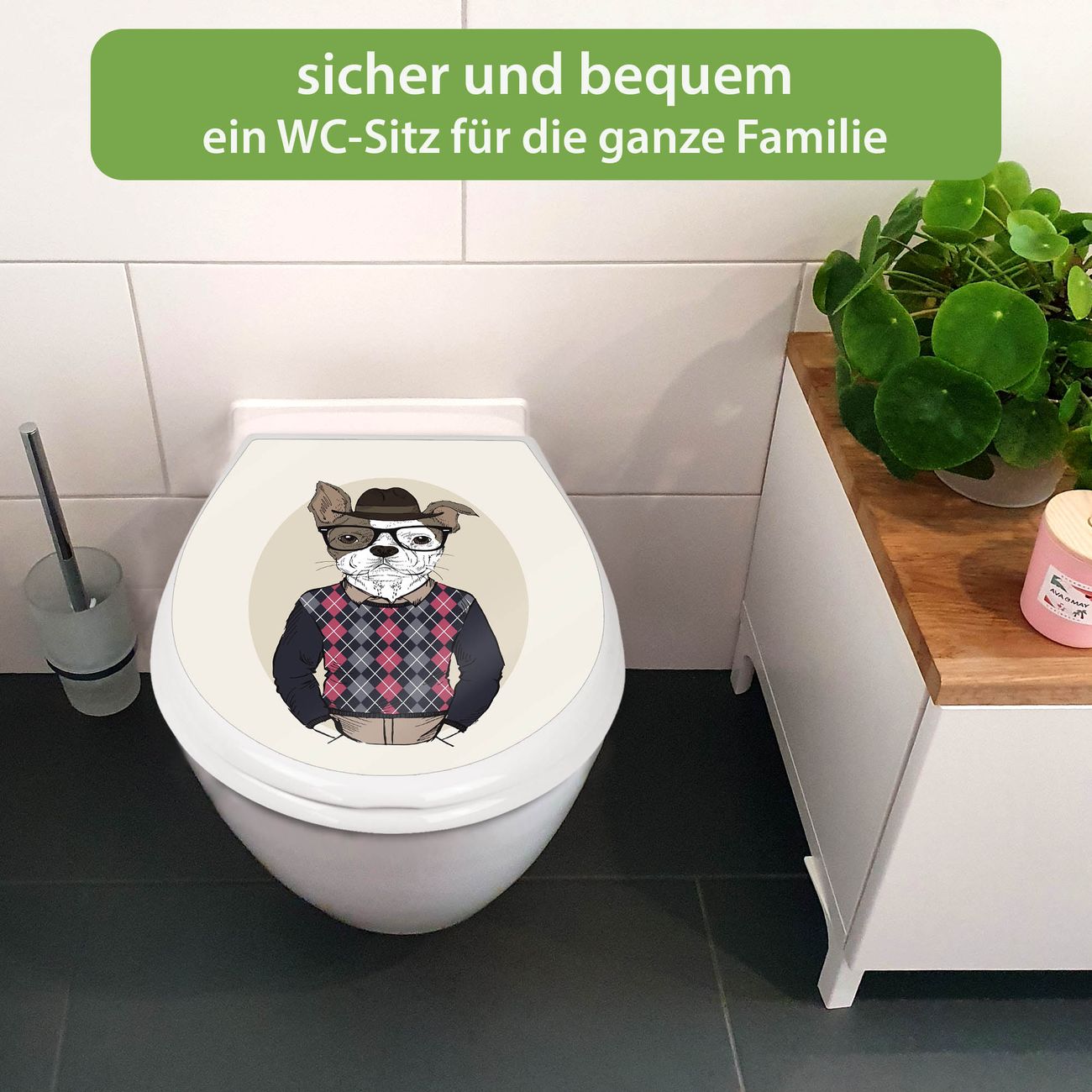 FUNKTION:Mit dem banjado Familien WC Sitz mit Absenkautomatik und dem Motiv Motiv Ludger verbinden Sie Design mit Funktionalität. Sie erhalten den Toilettendeckel in bewährt guter Qualität mit Montagematerial passend auf alle Euro-WC-Becken. Die Gesamtgröße beträgt 37,1cm x 44,9cm x 5cm, die Grundfarbe ist weiß.</p> DESIGN:Der Klodeckel in weiß mit Motiv Motiv Ludger hat eine ansprechende Optik, eine besondere Form und ist sehr stabil. Das Motiv besteht aus einer farbbrillianten Motivfolie, die durch ein Schutzlaminat zusätzlich vor Kratzern schützt. Der integrierte Kindersitz fügt sich harmonisch ein. DETAILS:Der Toilettensitz mit Soft Close besteht aus hochwertigem Polypropylen, ist geruchlos, ungiftig und kann mit handelsüblicher Seife gereinigt werden. Die Montage kann von von oben oder von unten erfolgen und ist kinderleicht. NUTZEN:Mit Hilfe der detaillierten Aufbauanleitung ermöglichen wir eine schnelle und unkomplizierte Montage. Die banjado Klobrille ist universell geeignet für alle Euro-WC-Schüsseln. Der Kindersitz kann unkompliziert entfernt werden. BANJADO:Ihr WC-Deckel wird in Sachsen in einer kleinen Manufaktur von Hand veredelt. Die Motivfolie ist lösungsmittelfrei und schutzlaminiert für einen langen Halt. Wir wünschen viel Freude bei der Auswahl eines schönen Motivs.