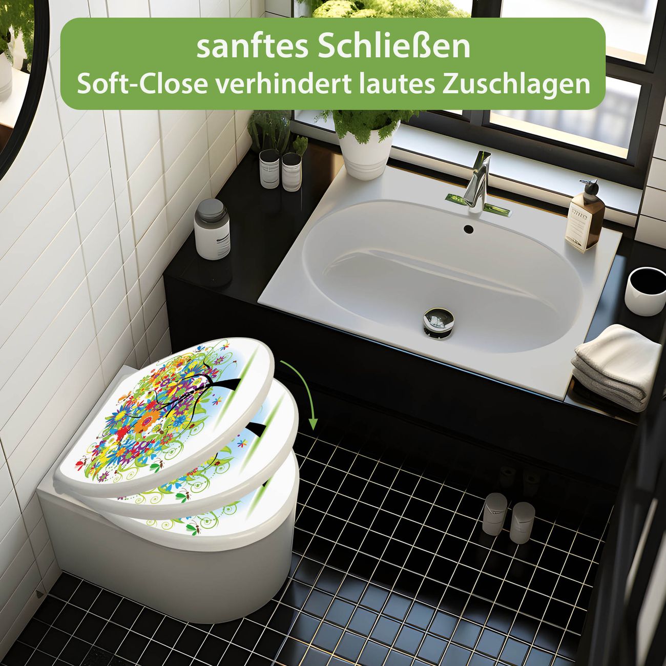 - Material: WC-Sitz und Deckel aus robustem Duroplast