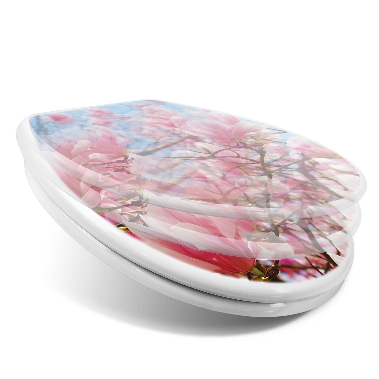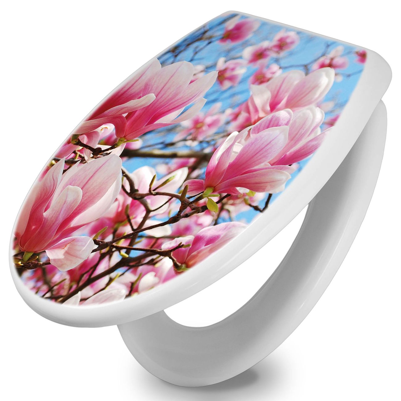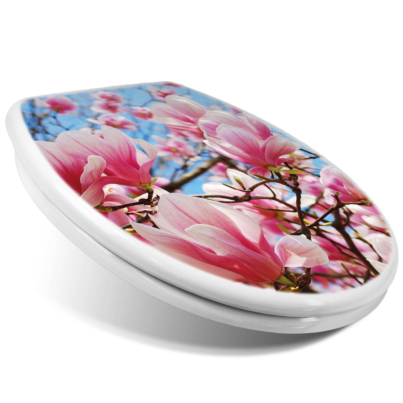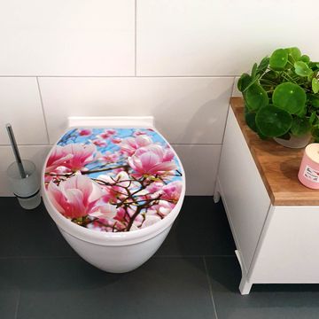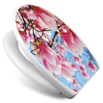 Toilettendeckel weiß mit Absenkautomatik Motiv Magnolienbaum