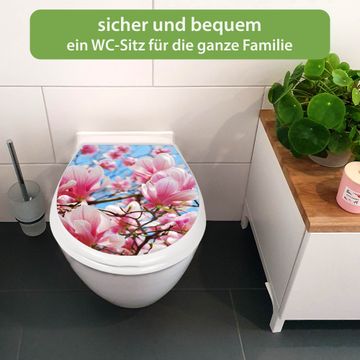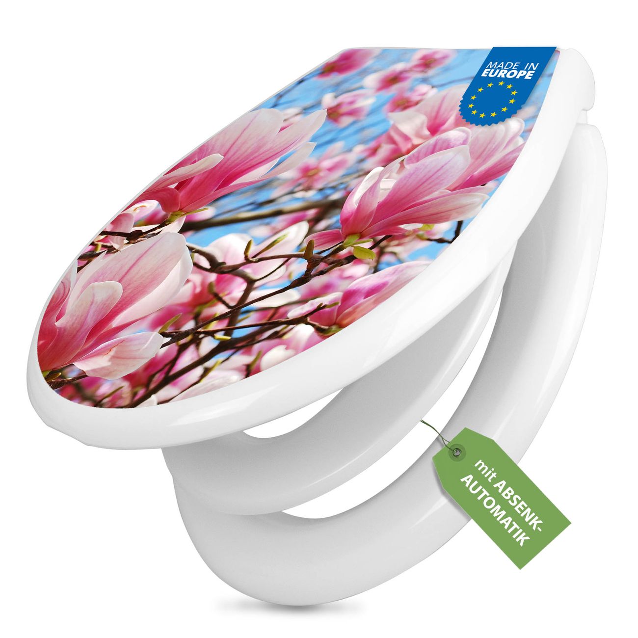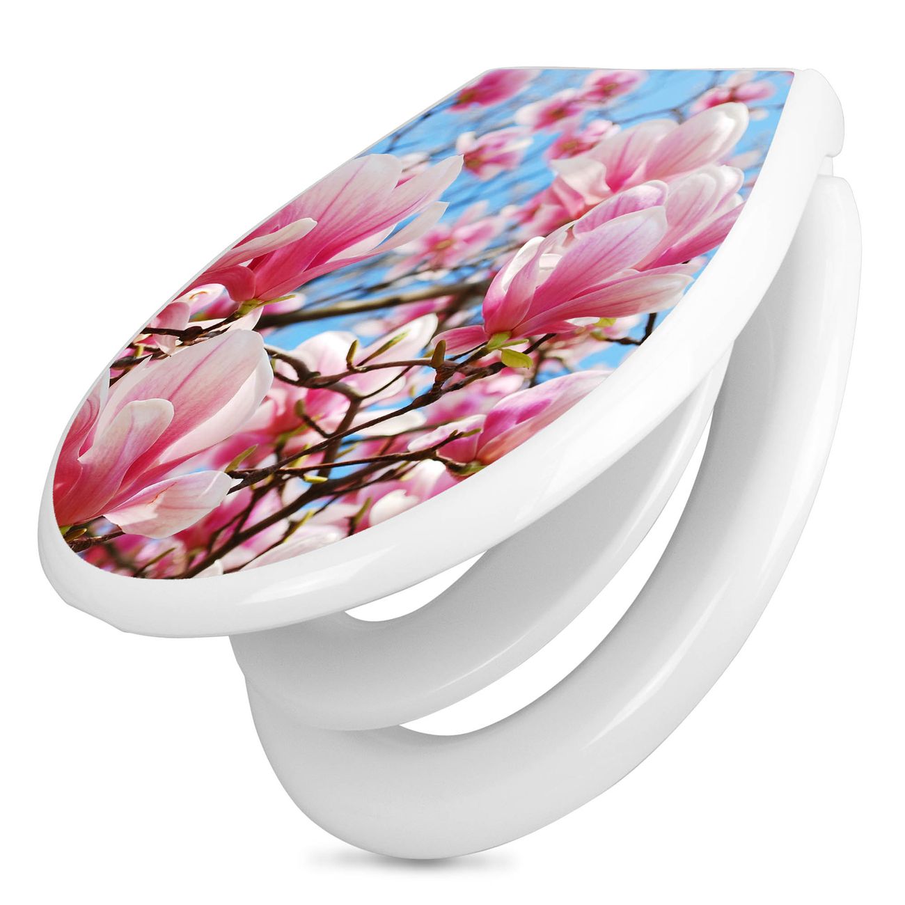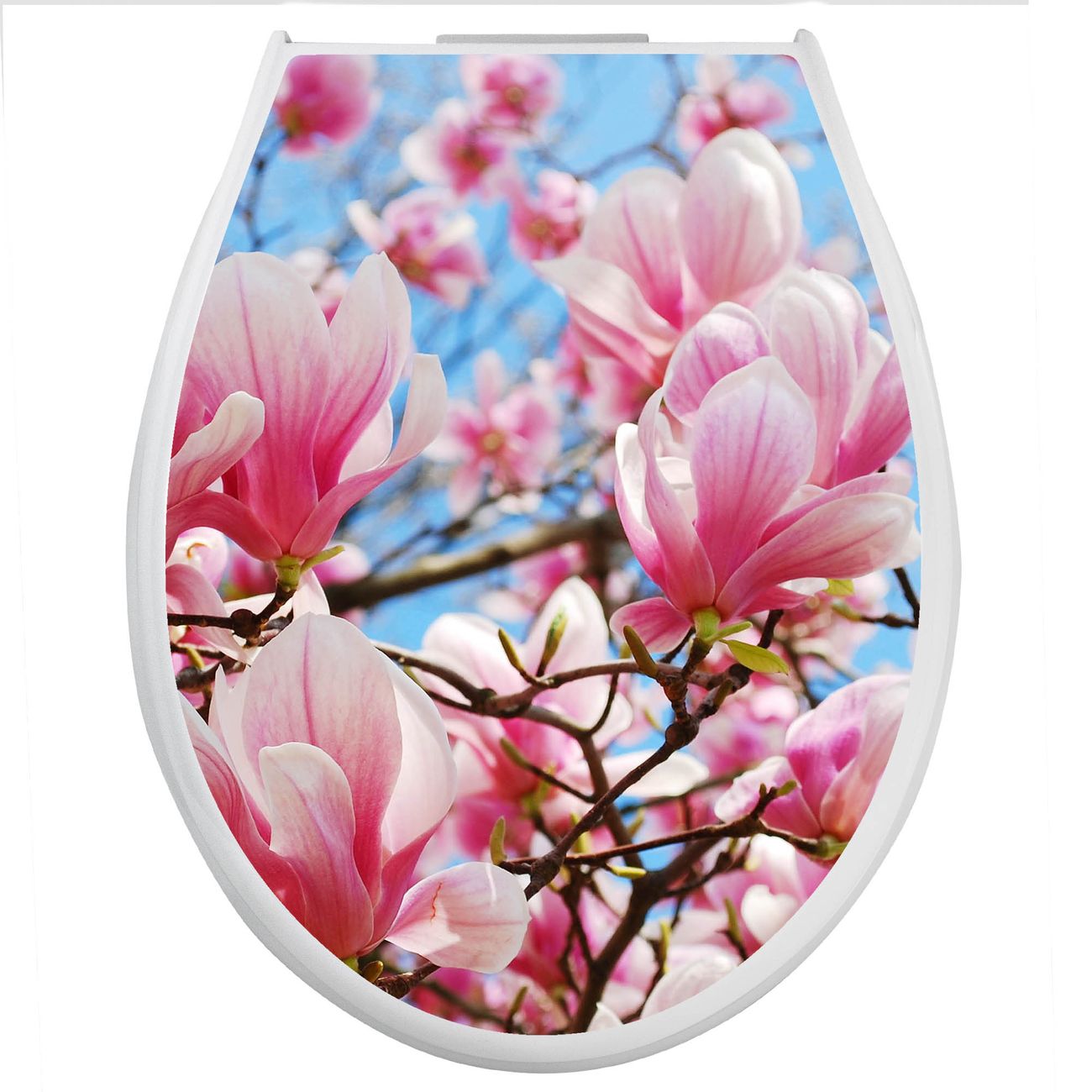 Toilettendeckel weiß mit Absenkautomatik Motiv Magnolienbaum