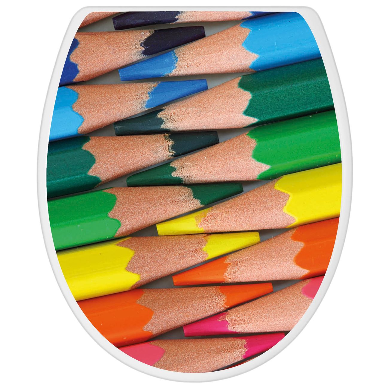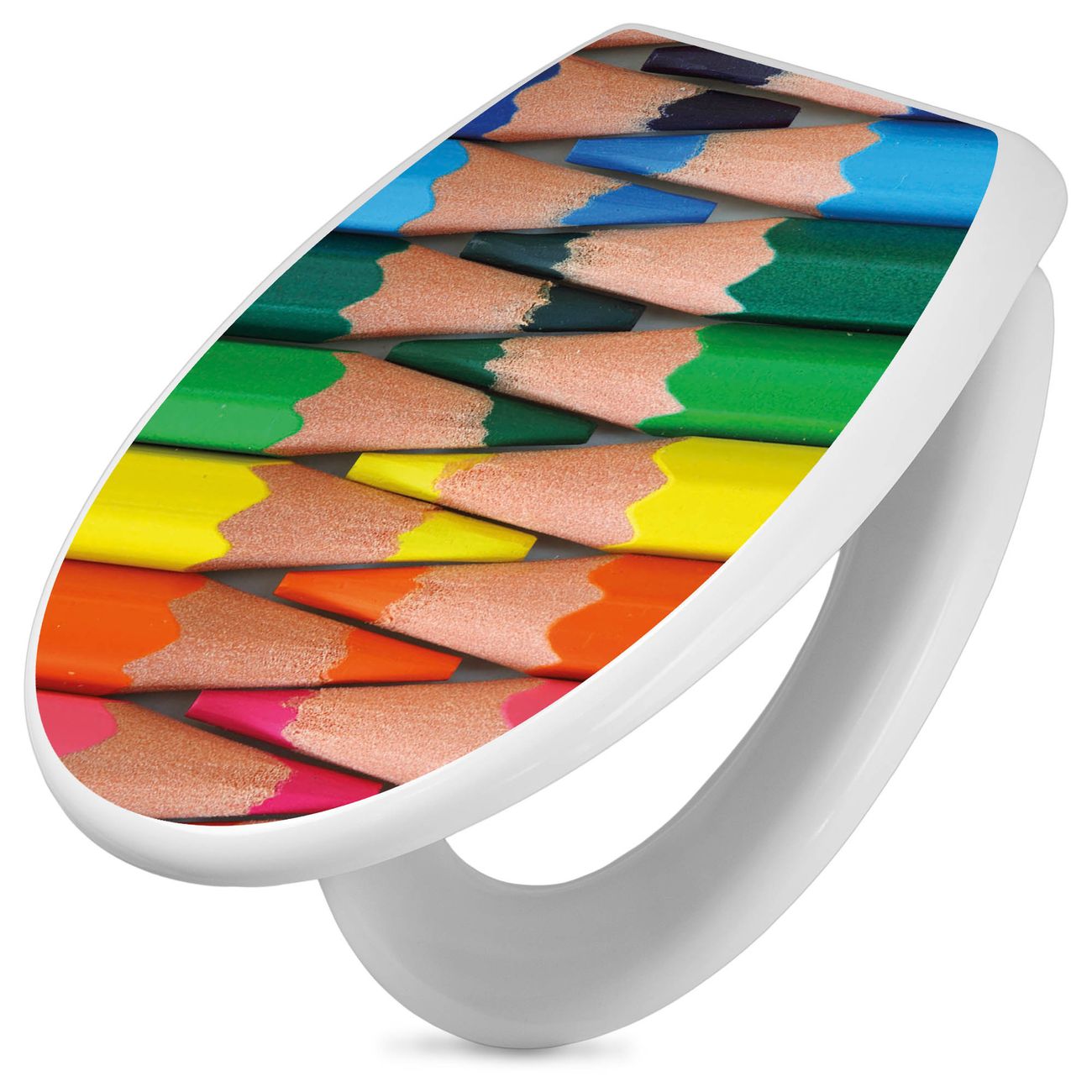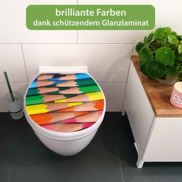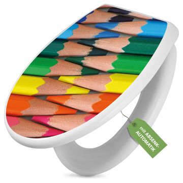 Toilettendeckel weiß mit Absenkautomatik Motiv Malstifte