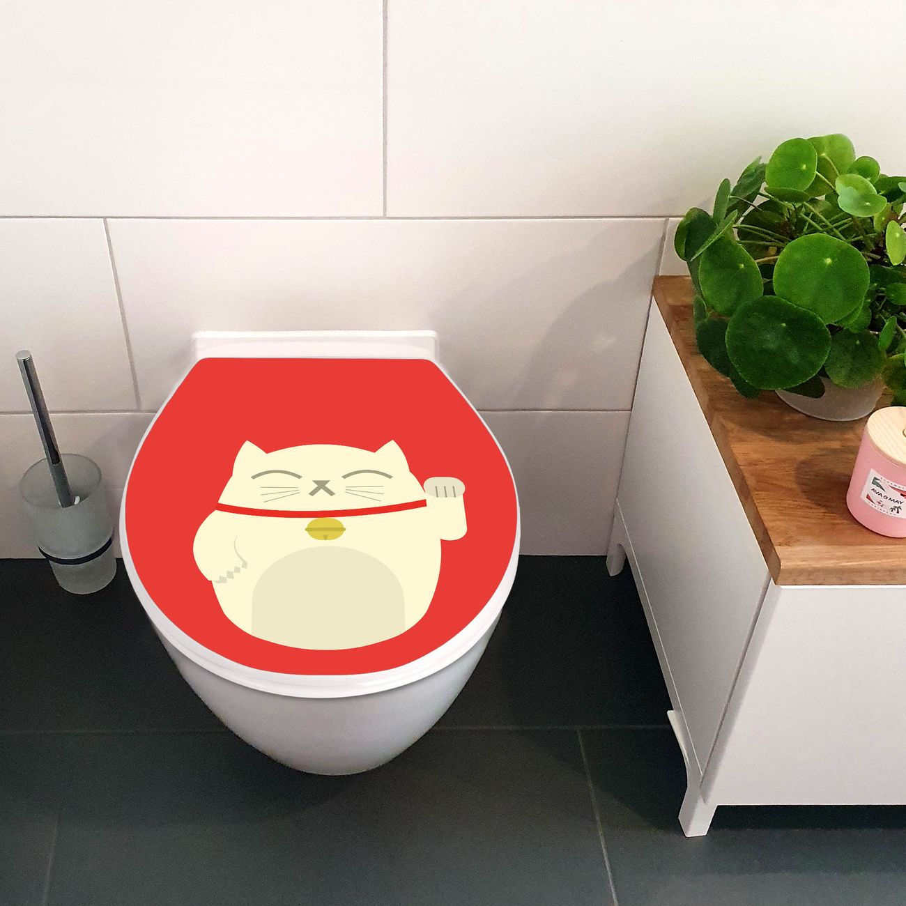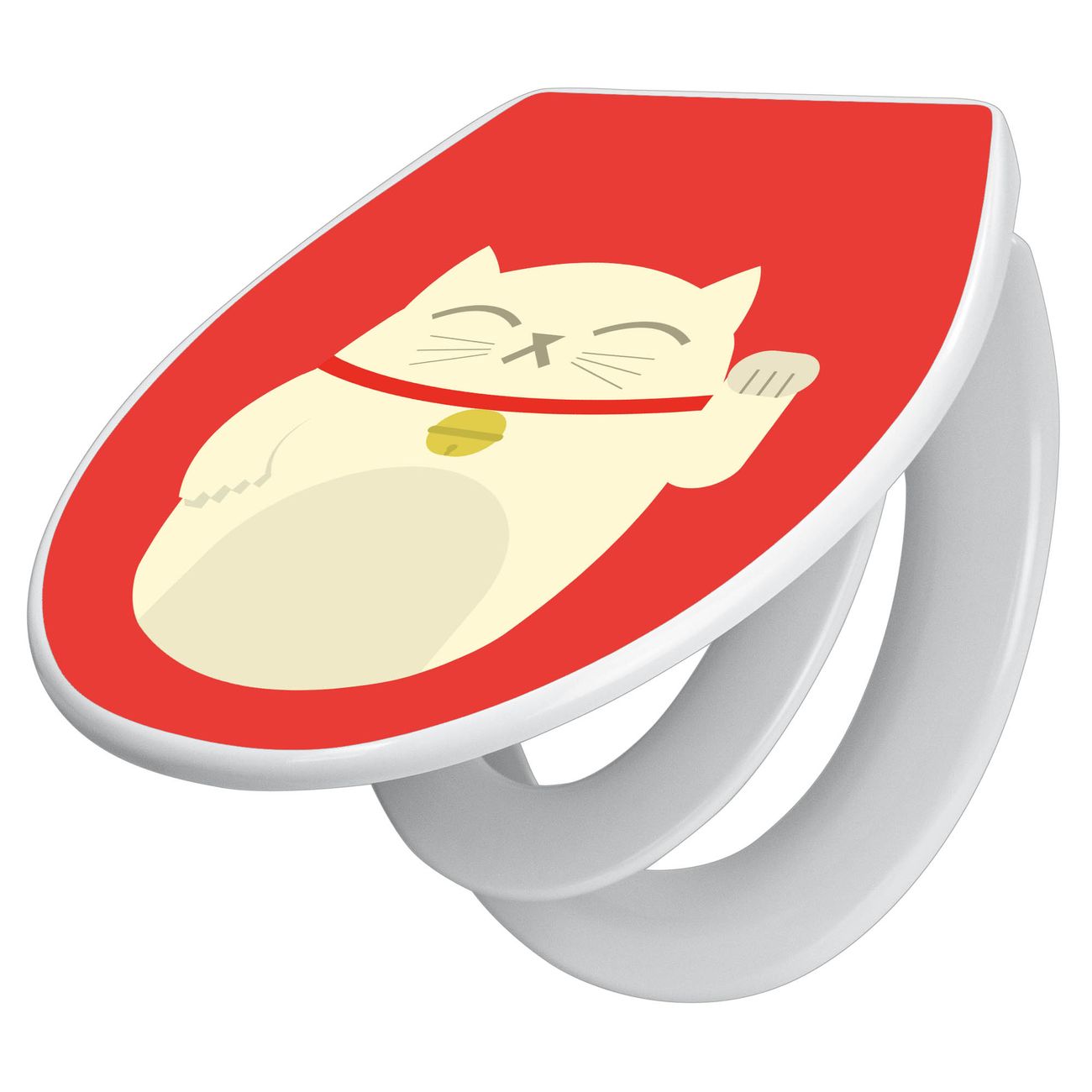 Toilettendeckel weiß mit Absenkautomatik Motiv Manekineko