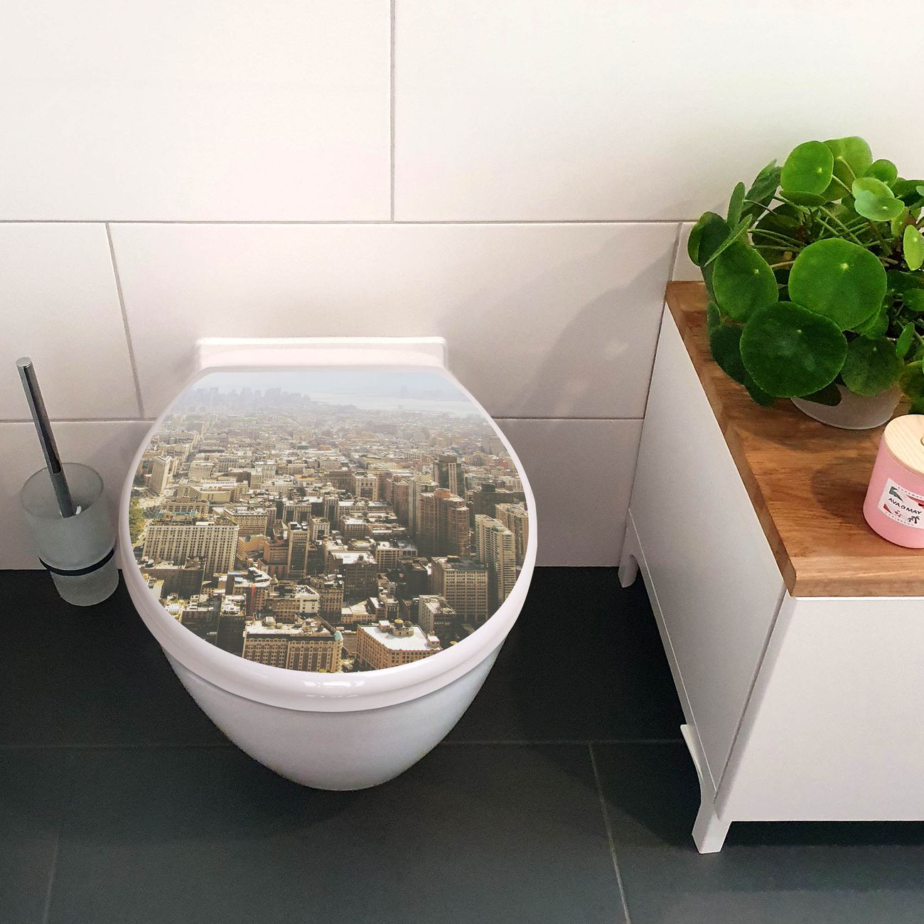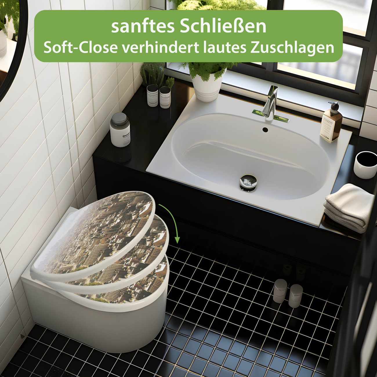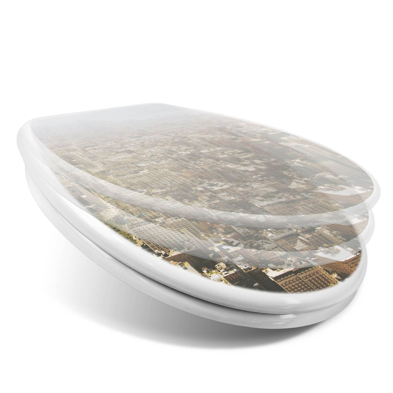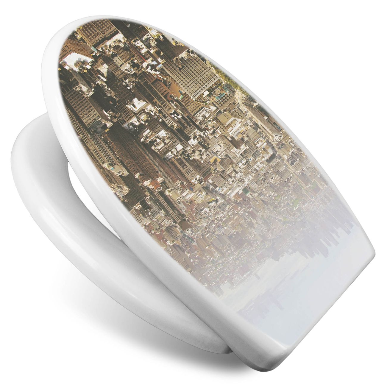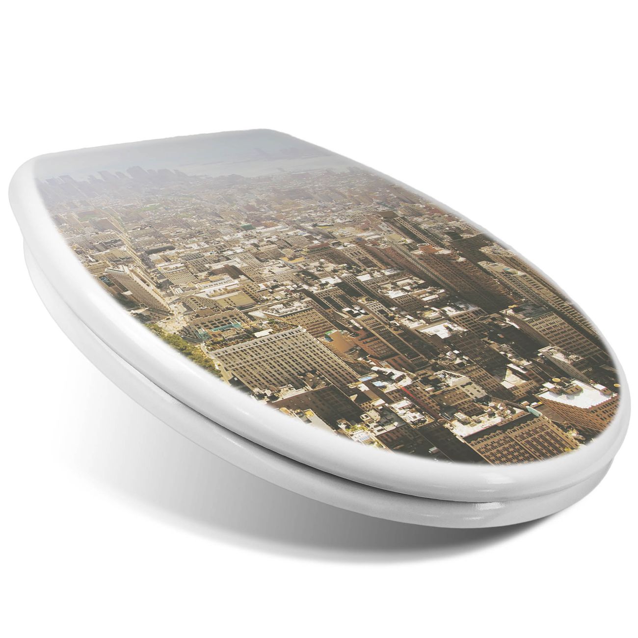 Toilettendeckel weiß mit Absenkautomatik Motiv Manhattan 1