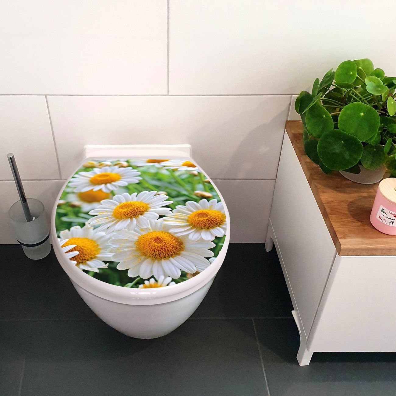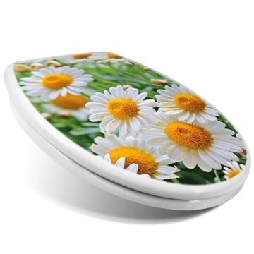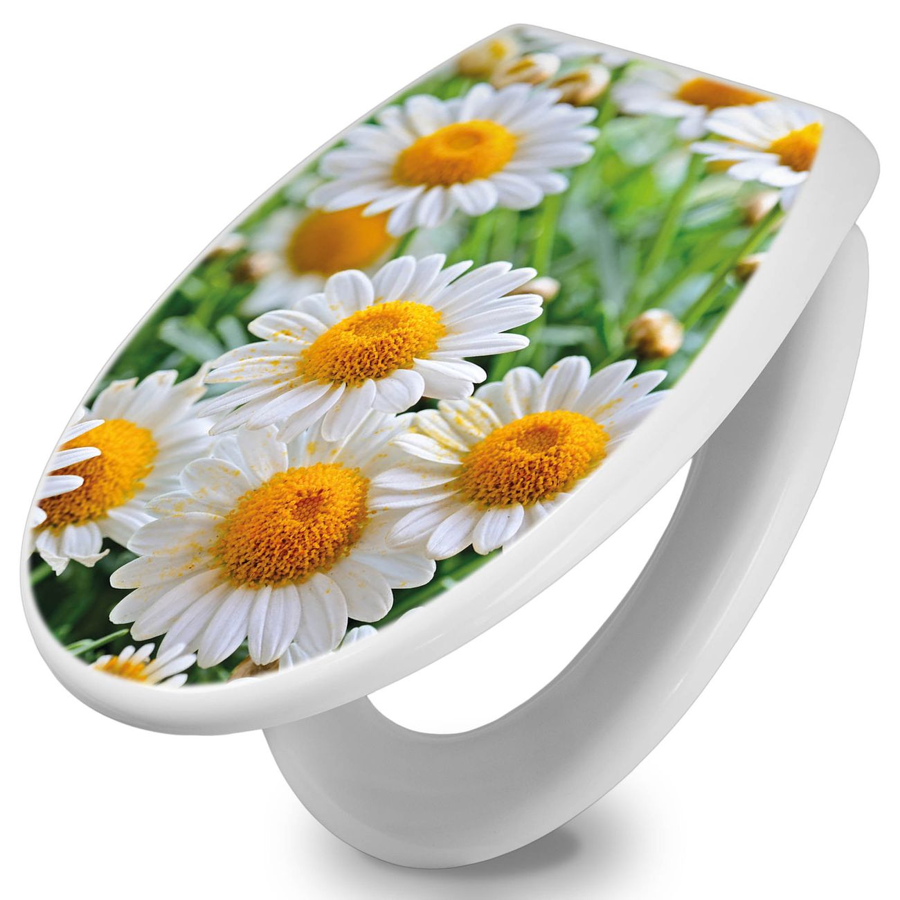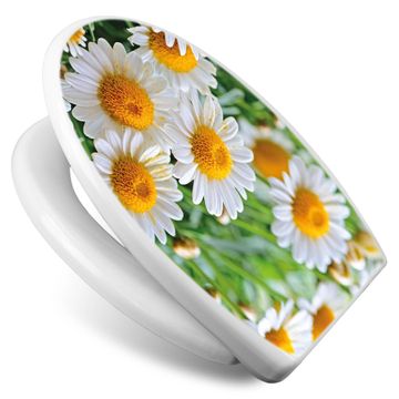Toilettendeckel weiß mit Absenkautomatik Motiv Margeriten Illustration