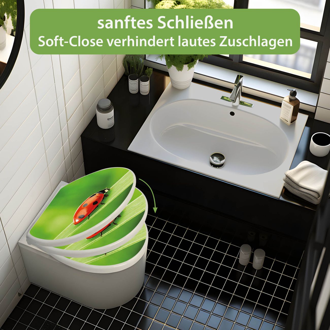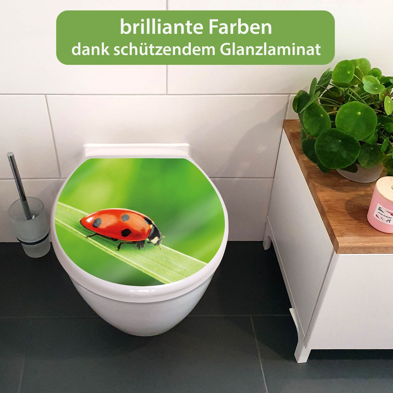 Toilettendeckel weiß mit Absenkautomatik Motiv Marienkäfer