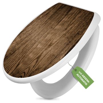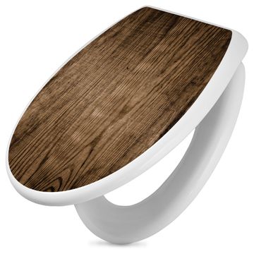 Toilettendeckel weiß mit Absenkautomatik Motiv Maserung Dunkel