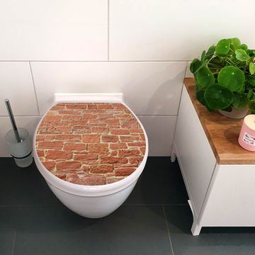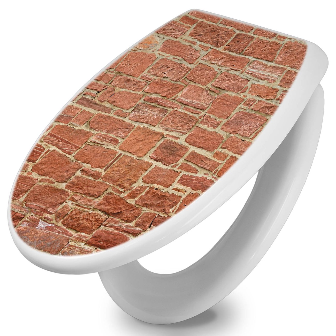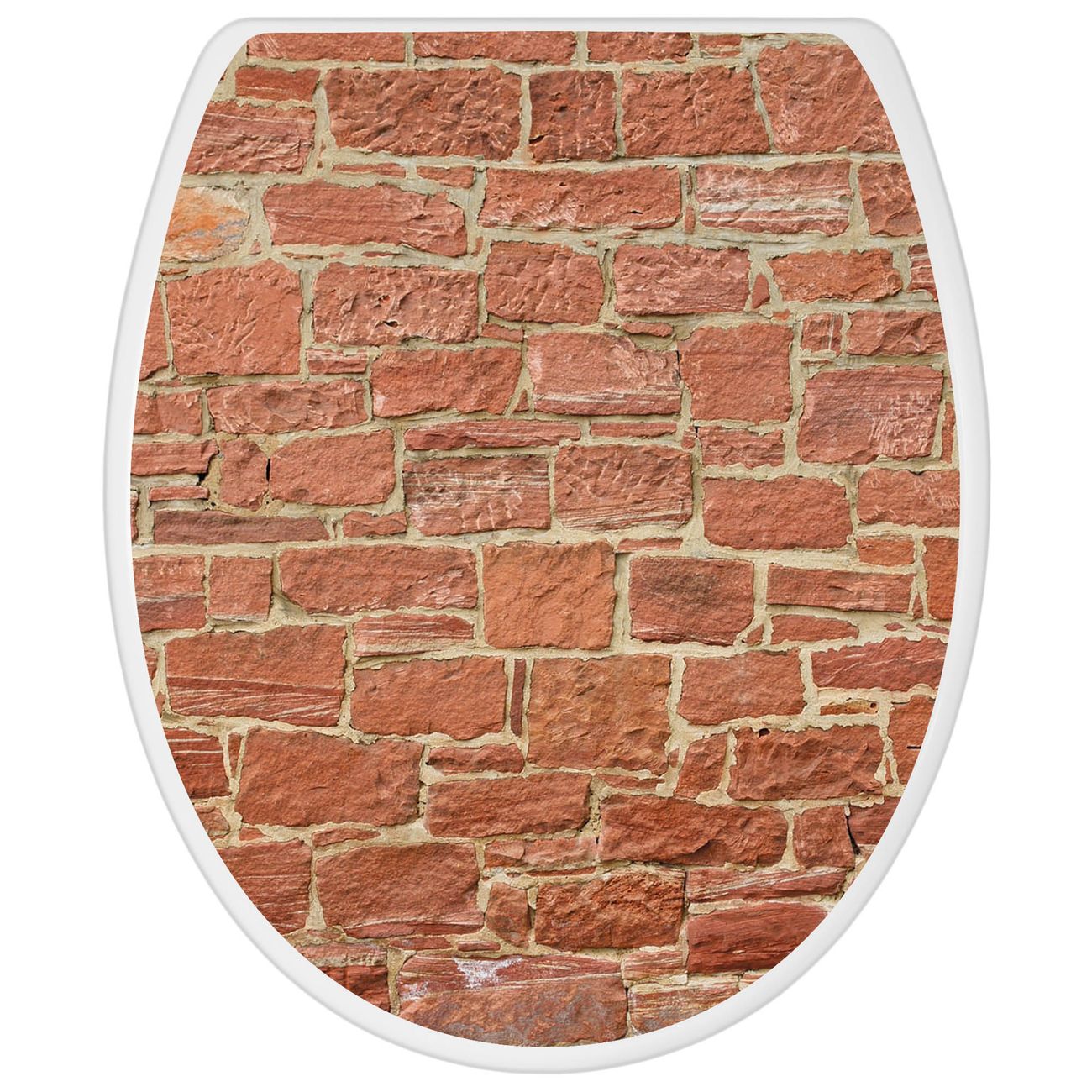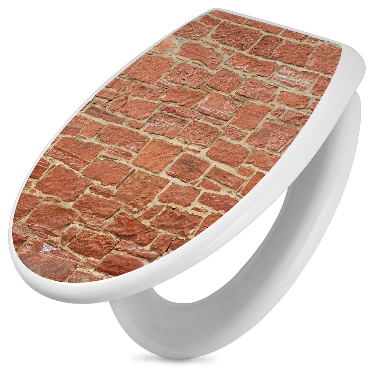 Toilettendeckel weiß mit Absenkautomatik Motiv Mauerwerk