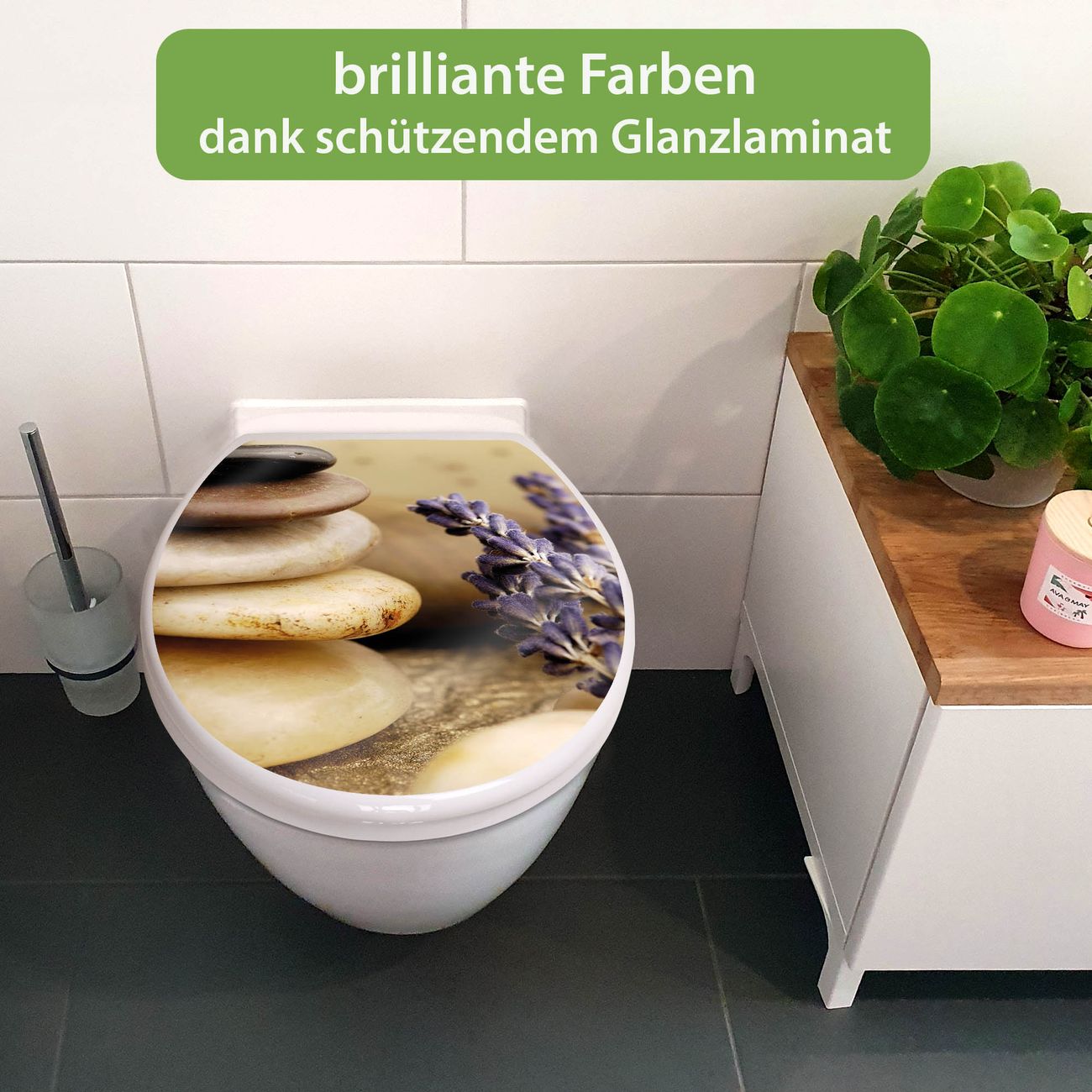 FUNKTION: Mit dem banjado Toilettendeckel mit Absenkautomatik verbinden Sie Design mit Funktionalität. Sie erhalten den WC Sitz in bewährt guter Qualität mit Edelstahl Scharnieren und Montagematerial. DESIGN: Der Klodeckel hat eine ansprechende Optik, eine besondere Form und ist sehr stabil. Das Motiv besteht aus einer farbbrillianten Motivfolie, die durch ein Schutzlaminat zusätzlich vor Kratzern schützt. DETAILS: Der Toilettensitz besteht aus Duroplast, die Scharniere sind aus hochwertigem Edelstahl, Materialien die Ihnen eine leichte und hygienische Reinigung ermöglichen. Die Gesamtgröße beträgt 37,3cm x 45cm x 5cm, die Grundfarbe ist weiß. NUTZEN: Mit Hilfe der detaillierten Aufbauanleitung ermöglichen wir eine schnelle und unkomplizierte Montage. Die banjado Klobrille ist universell geeignet für alle gängigen WC Schüsseln. Der Lochabstand zur Befestigung kann variable eingestellt werden. BANJADO: Ihr WC-Deckel wird in Sachsen in einer kleinen Manufaktur von Hand veredelt. Die Motivfolie ist lösungsmittelfrei und schutzlaminiert, für einen langen Halt. Wir wünschen viel Freude bei der Auswahl eines schönen Motivs.