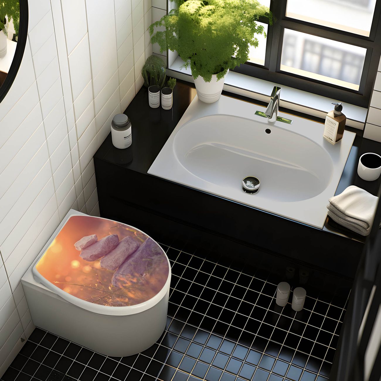 FUNKTION: Mit dem banjado Toilettendeckel mit Absenkautomatik verbinden Sie Design mit Funktionalität. Sie erhalten den WC Sitz in bewährt guter Qualität mit Edelstahl Scharnieren und Montagematerial. DESIGN: Der Klodeckel hat eine ansprechende Optik, eine besondere Form und ist sehr stabil. Das Motiv besteht aus einer farbbrillianten Motivfolie, die durch ein Schutzlaminat zusätzlich vor Kratzern schützt. DETAILS: Der Toilettensitz besteht aus Duroplast, die Scharniere sind aus hochwertigem Edelstahl, Materialien die Ihnen eine leichte und hygienische Reinigung ermöglichen. Die Gesamtgröße beträgt 37,3cm x 45cm x 5cm, die Grundfarbe ist weiß. NUTZEN: Mit Hilfe der detaillierten Aufbauanleitung ermöglichen wir eine schnelle und unkomplizierte Montage. Die banjado Klobrille ist universell geeignet für alle gängigen WC Schüsseln. Der Lochabstand zur Befestigung kann variable eingestellt werden. BANJADO: Ihr WC-Deckel wird in Sachsen in einer kleinen Manufaktur von Hand veredelt. Die Motivfolie ist lösungsmittelfrei und schutzlaminiert, für einen langen Halt. Wir wünschen viel Freude bei der Auswahl eines schönen Motivs.
