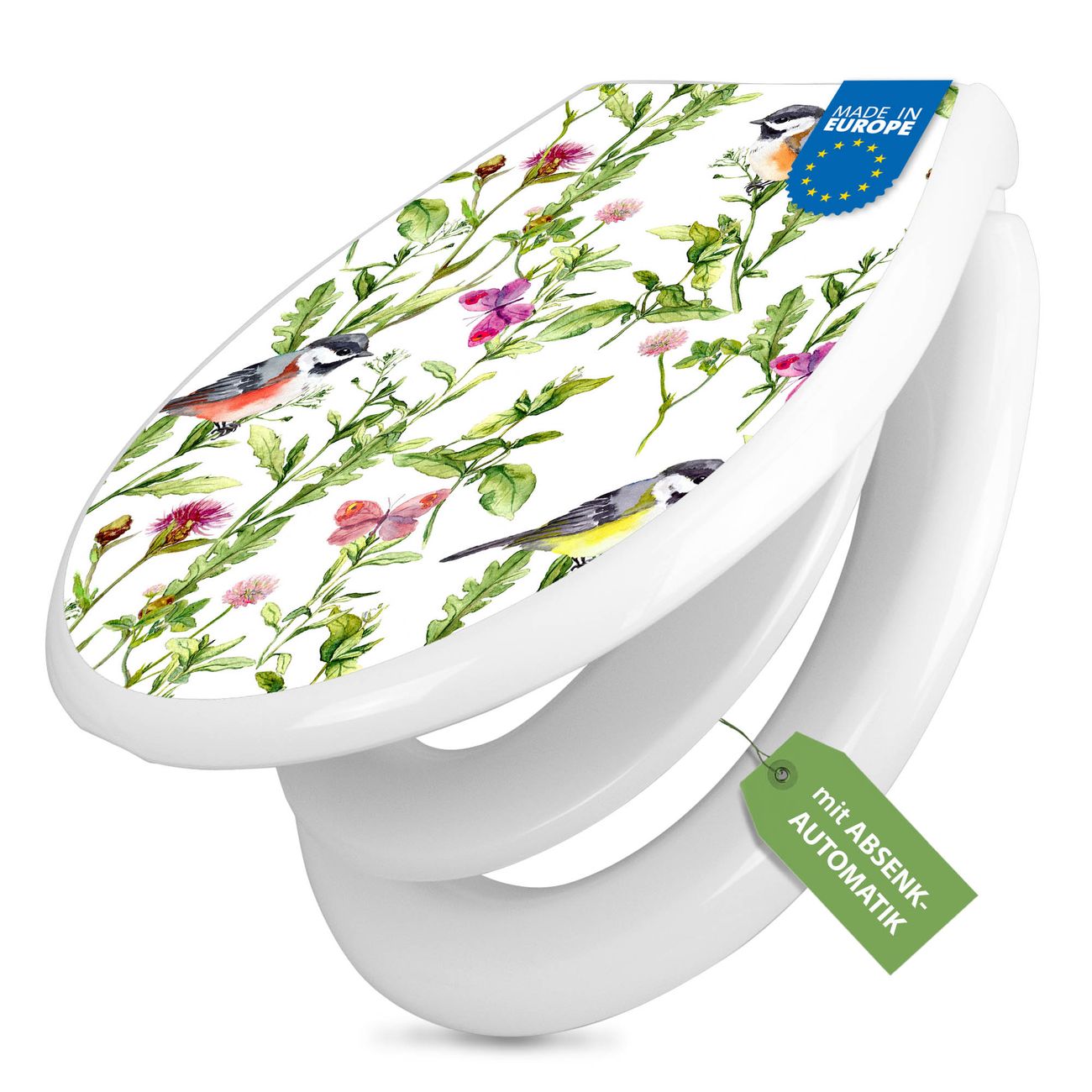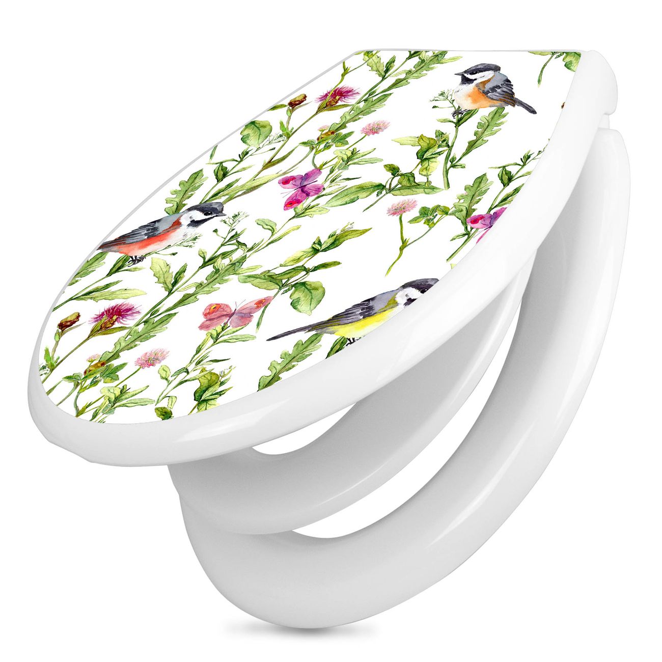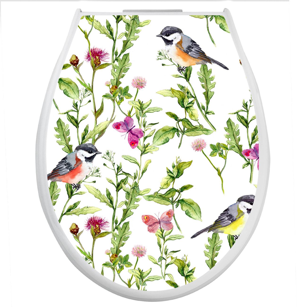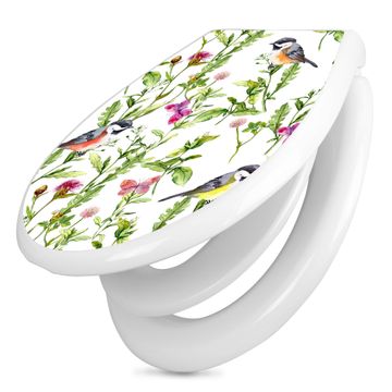 Toilettendeckel weiß mit Absenkautomatik Motiv Meisen im Klee