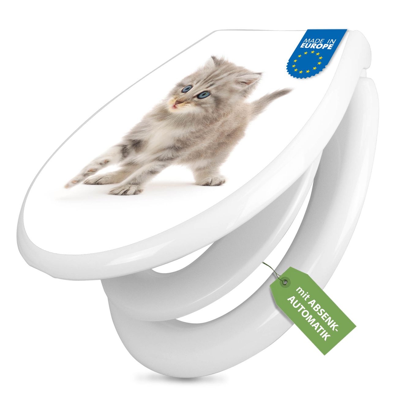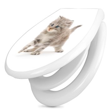 Toilettendeckel weiß mit Absenkautomatik Motiv Miau