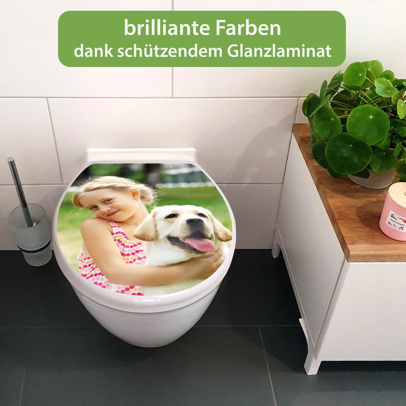 Toilettendeckel weiß mit Absenkautomatik Motiv Wunschmotiv