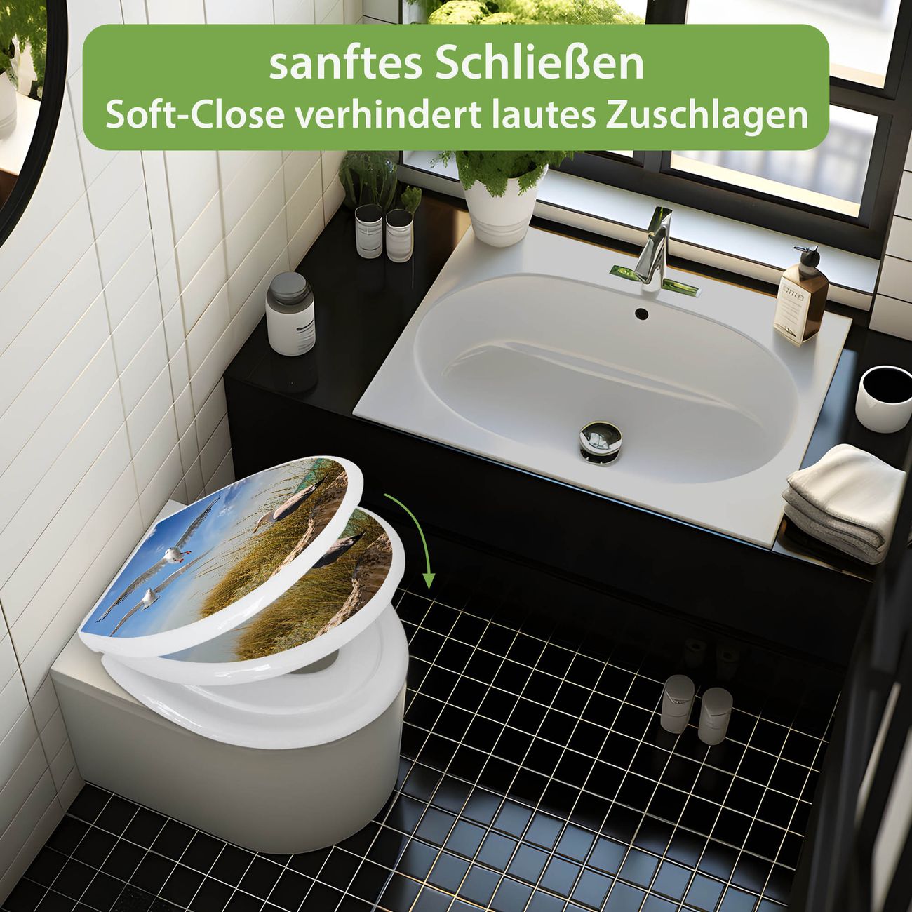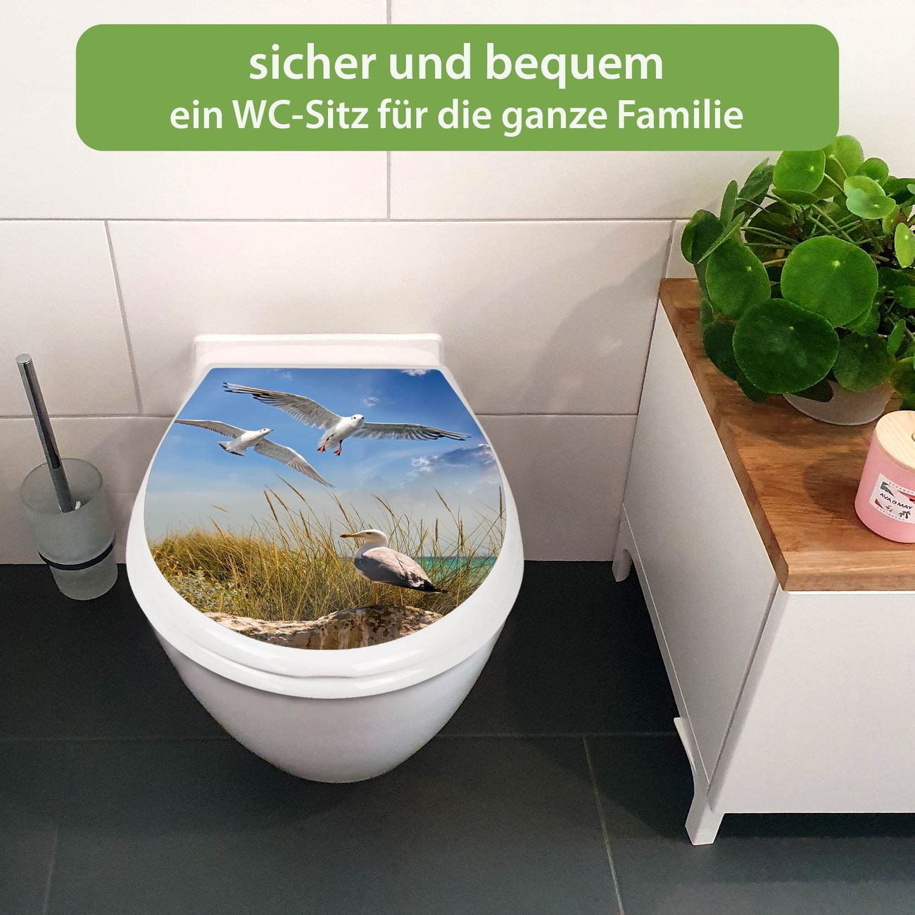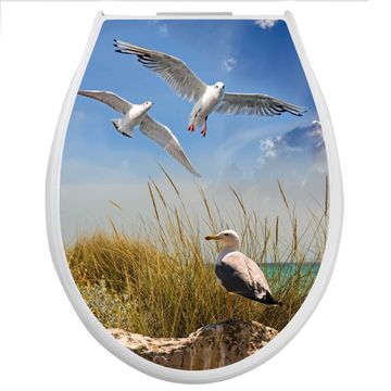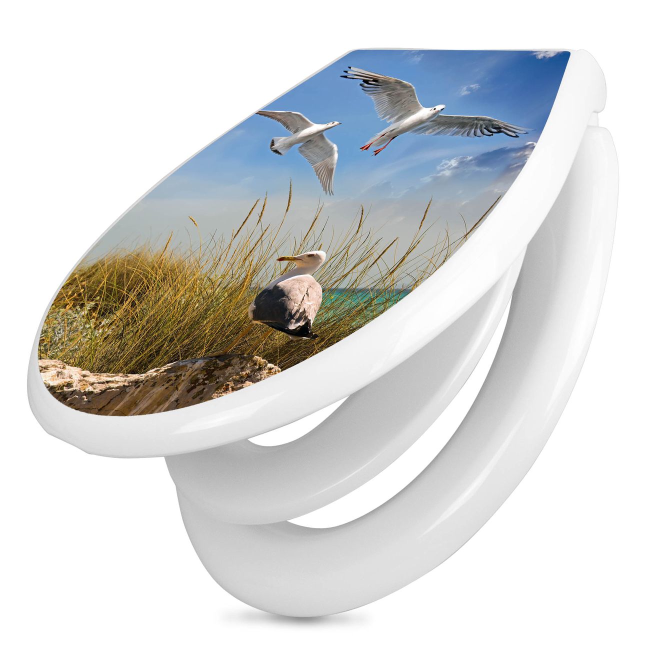 Toilettendeckel weiß mit Absenkautomatik Motiv Möwen