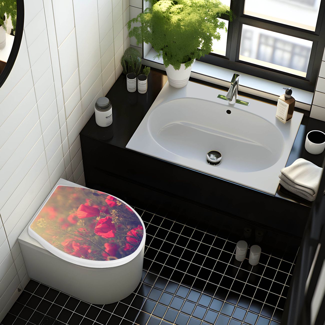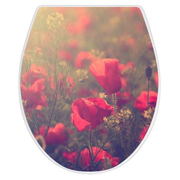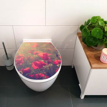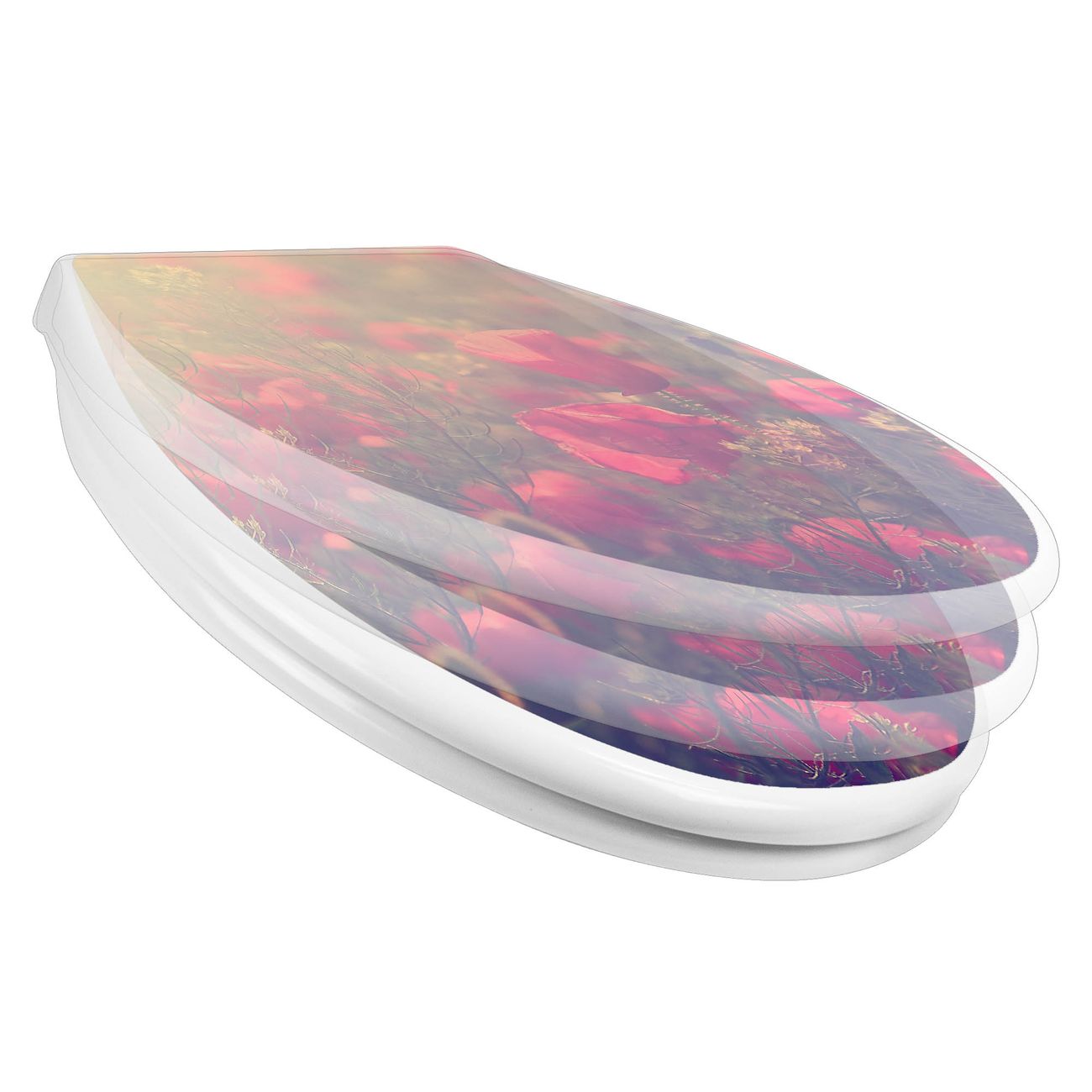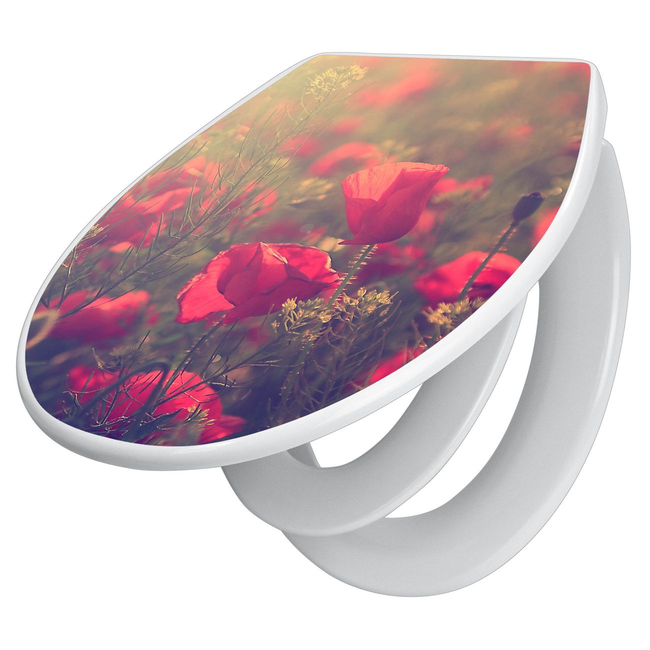 Toilettendeckel weiß mit Absenkautomatik Motiv Mohn