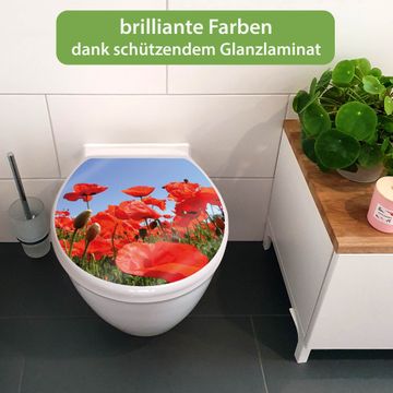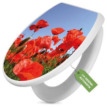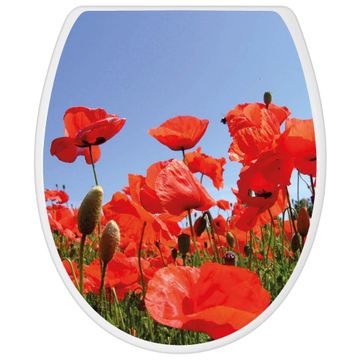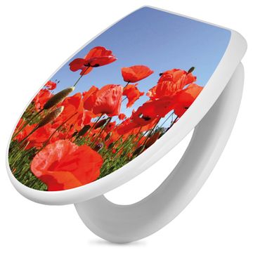 Toilettendeckel weiß mit Absenkautomatik Motiv Mohnblumen