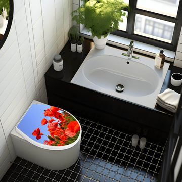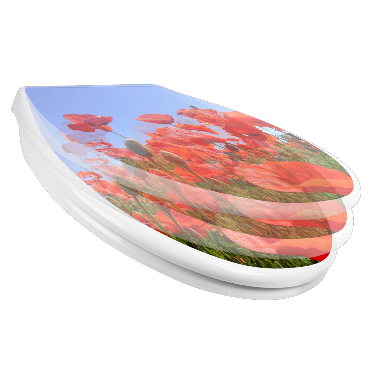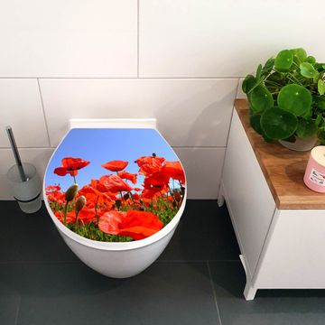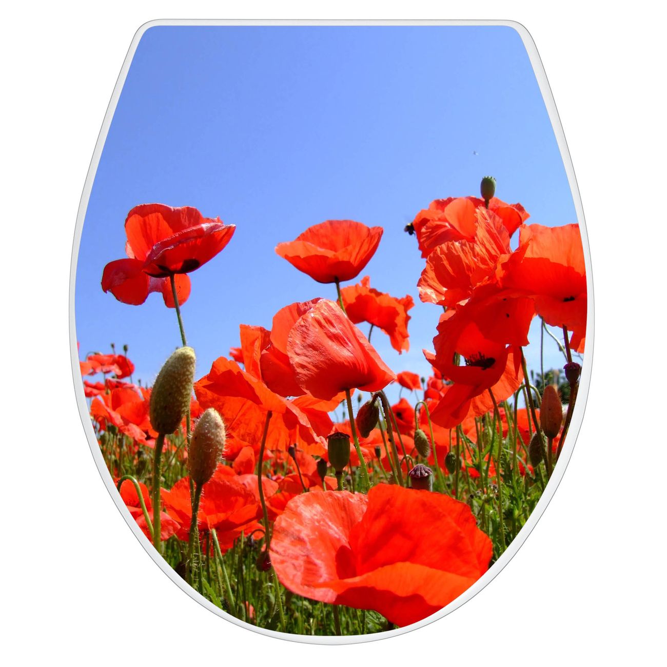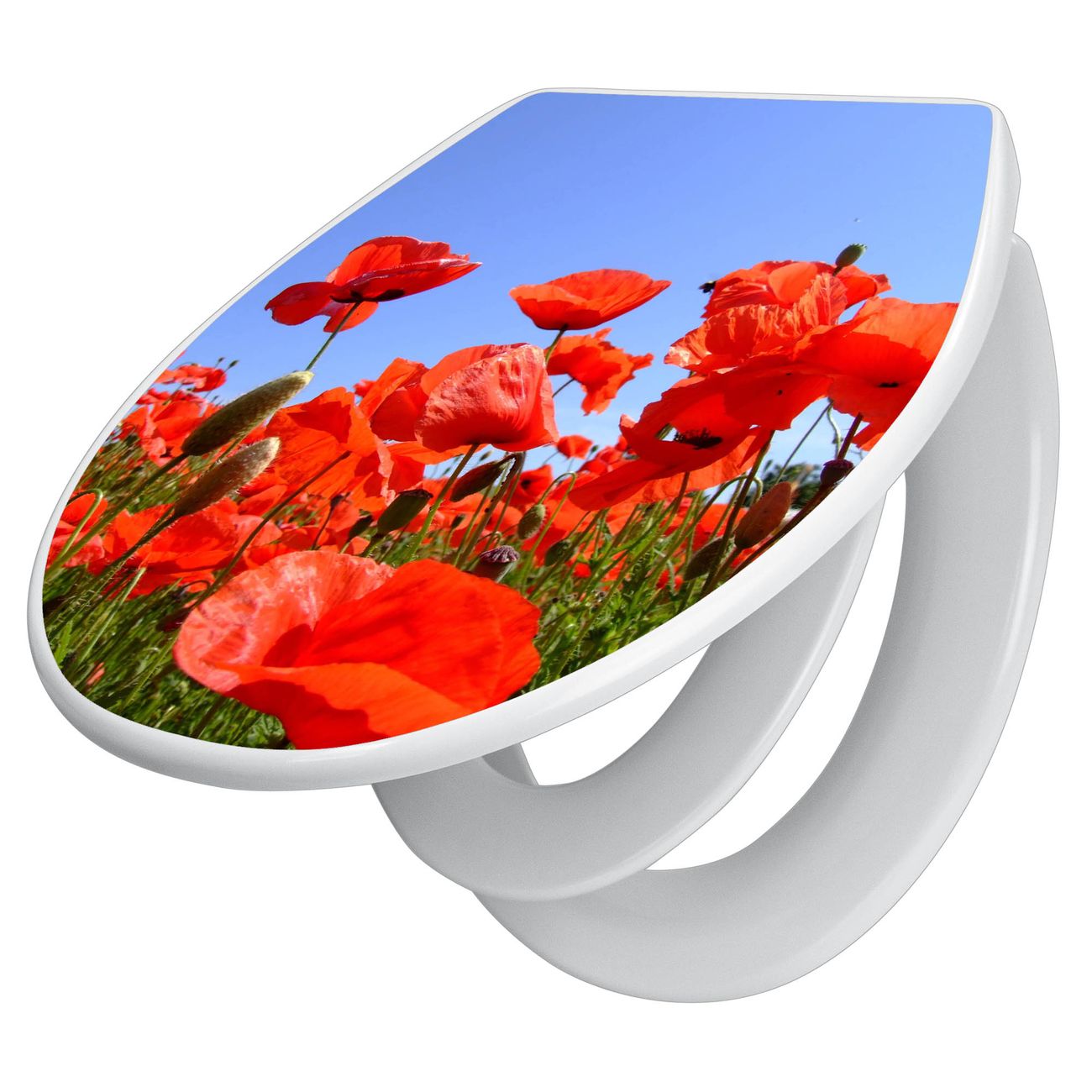 Toilettendeckel weiß mit Absenkautomatik Motiv Mohnblumen
