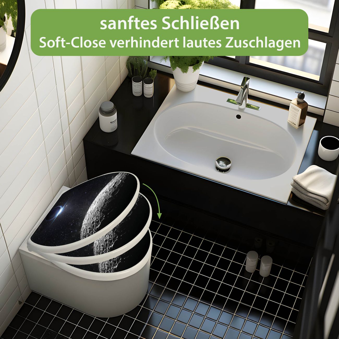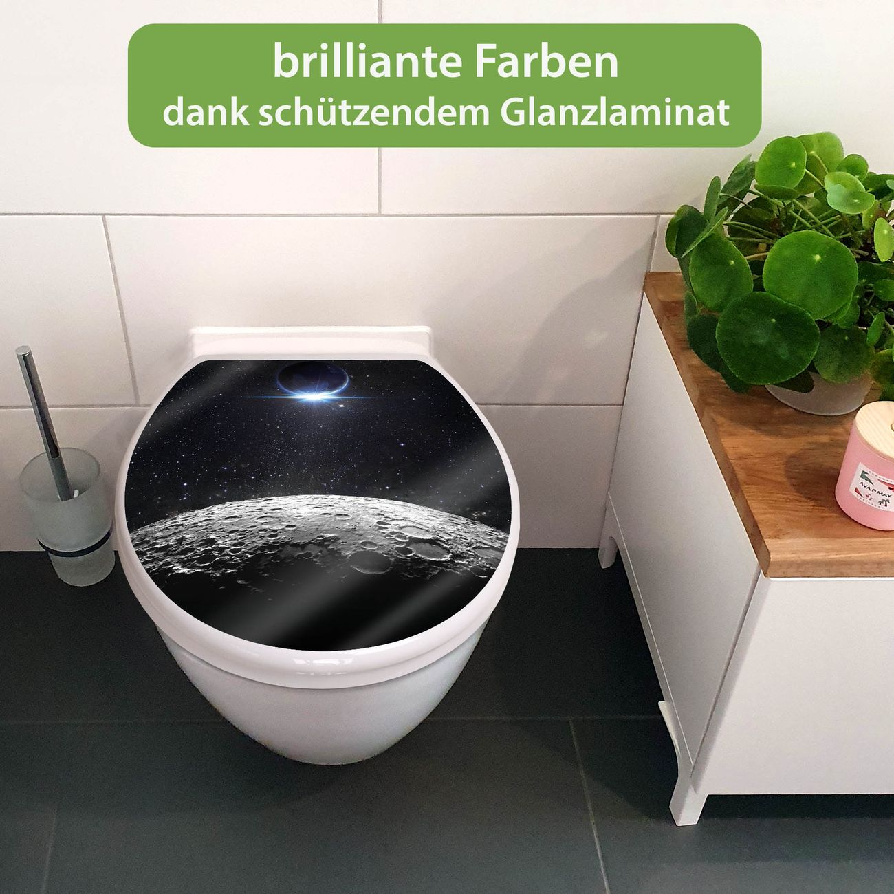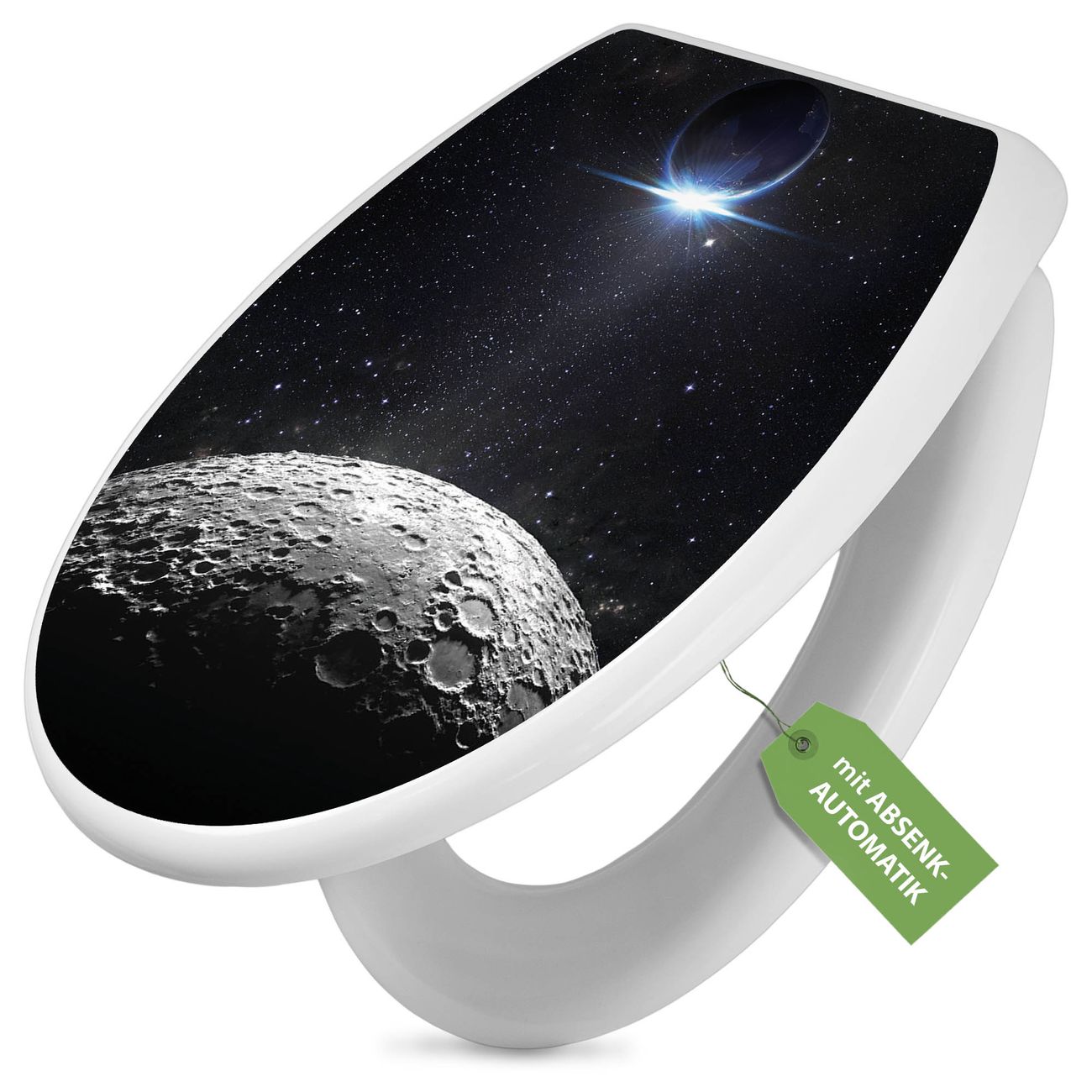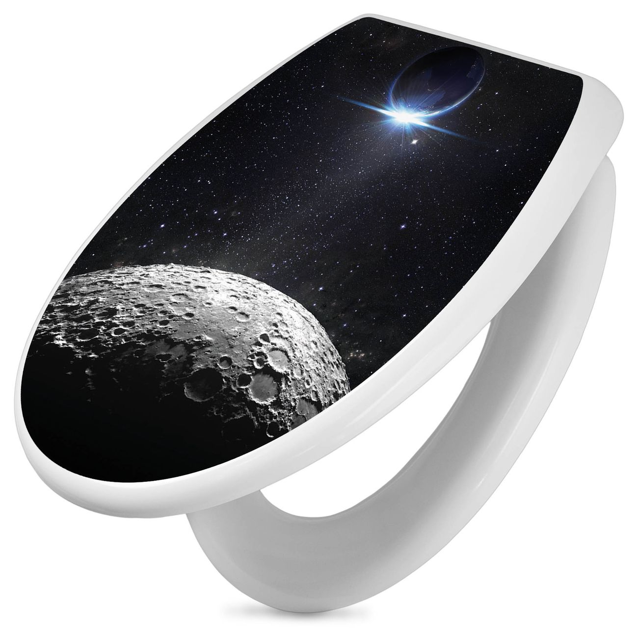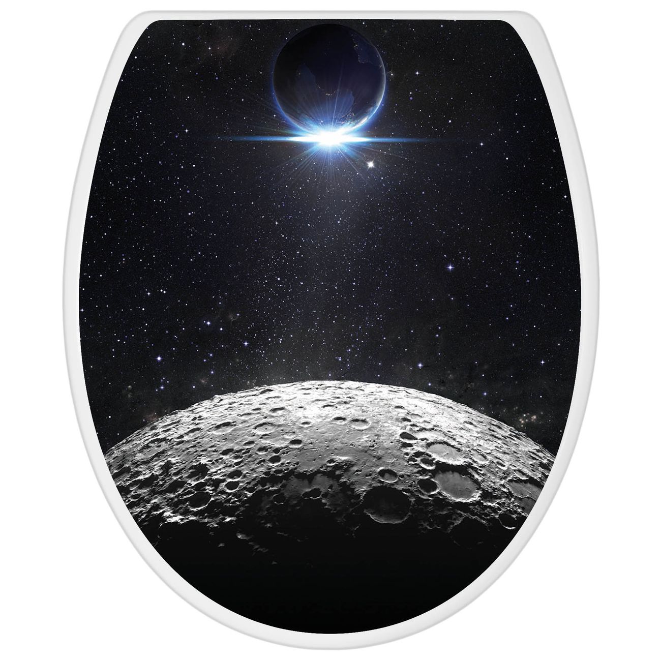 Toilettendeckel weiß mit Absenkautomatik Motiv Mondlandschaft