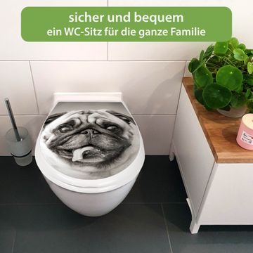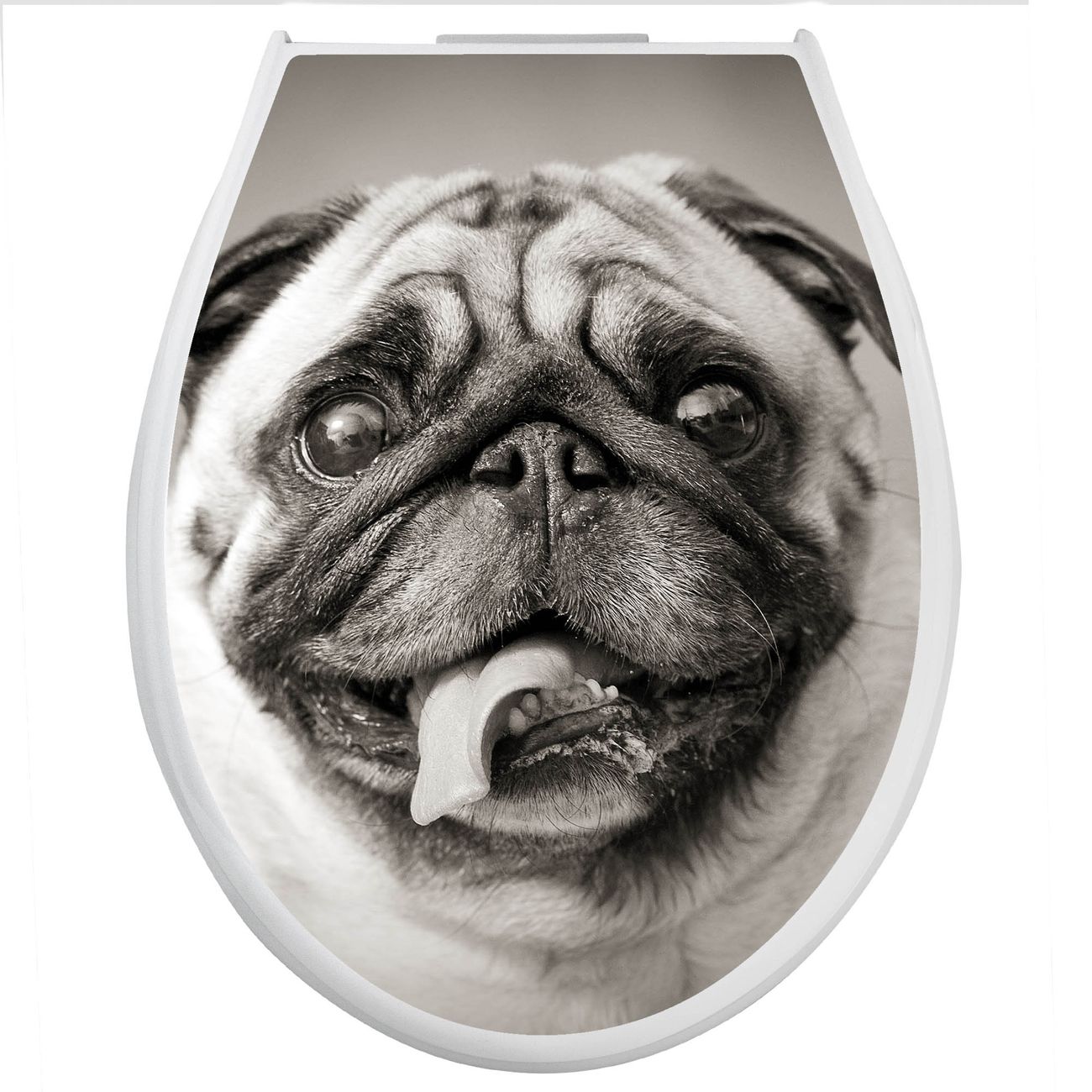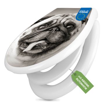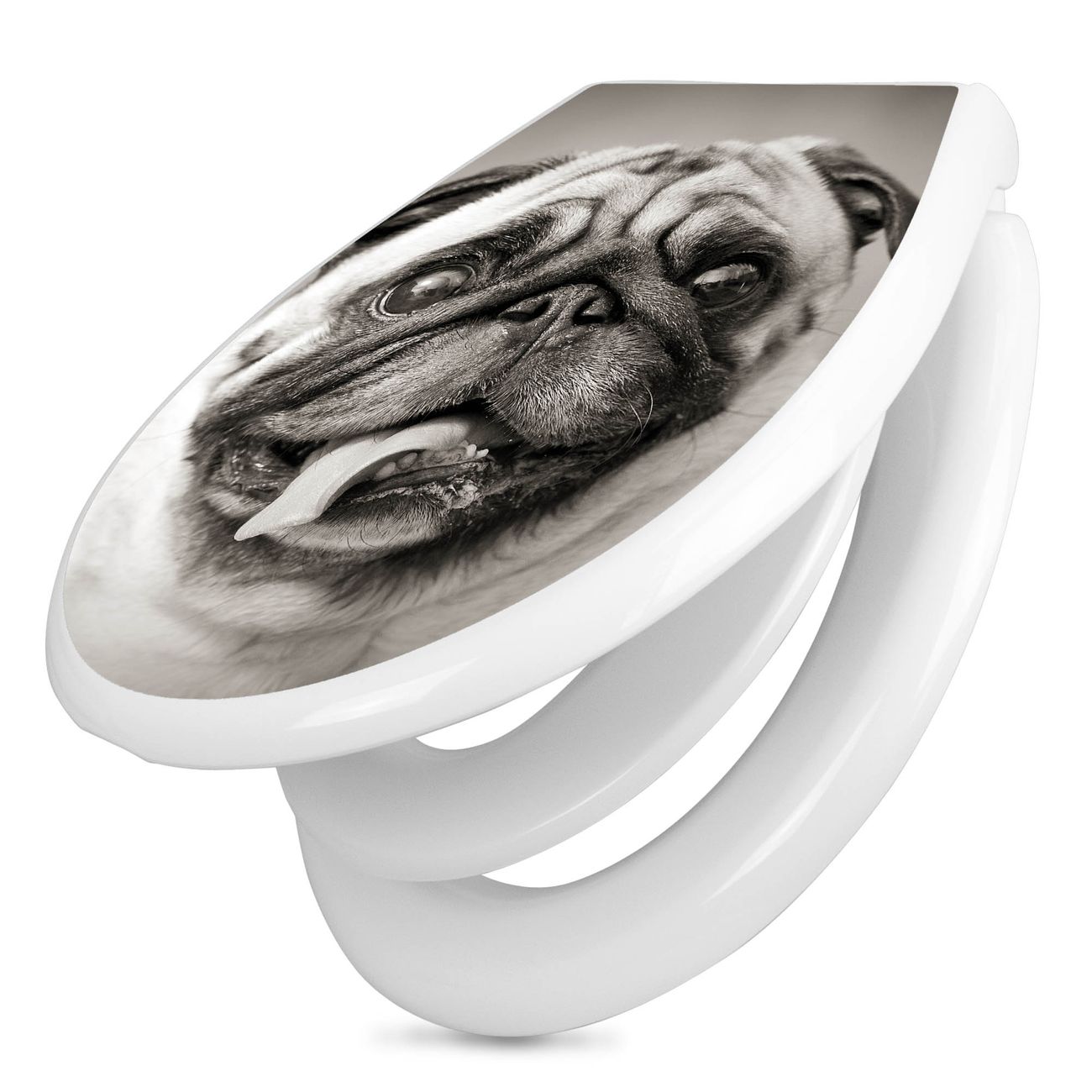 Toilettendeckel weiß mit Absenkautomatik Motiv Mops Porträt