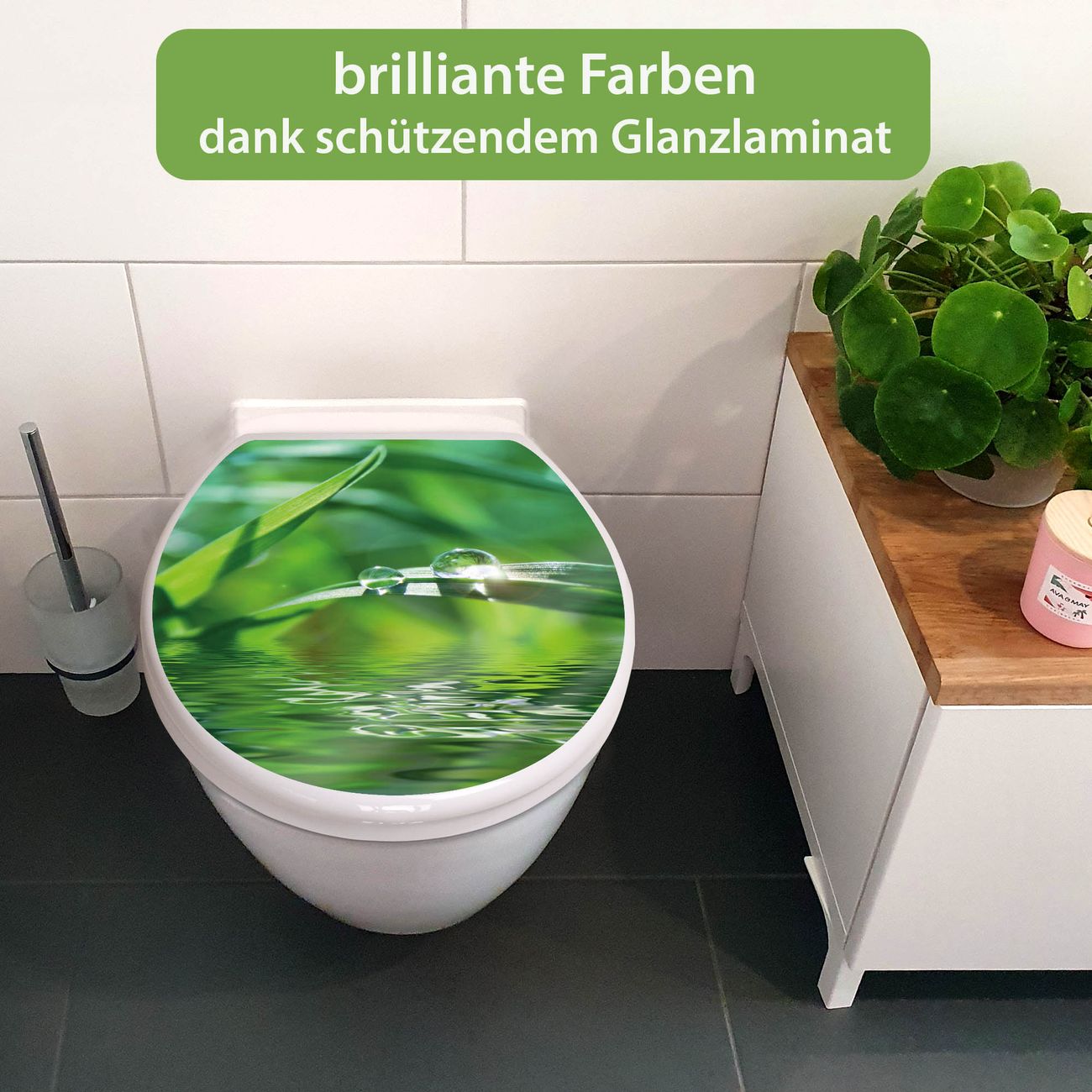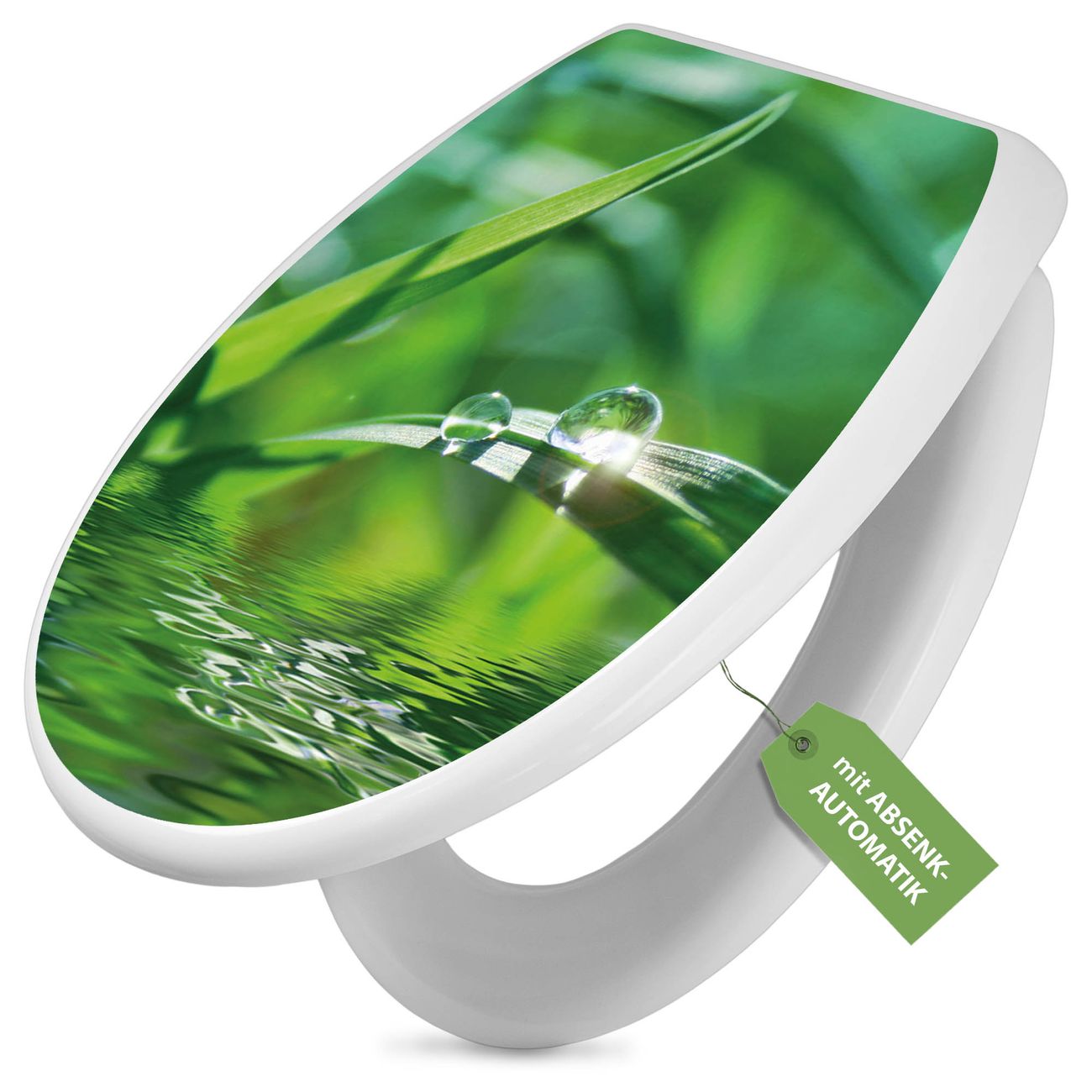 Toilettendeckel weiß mit Absenkautomatik Motiv Morgentau