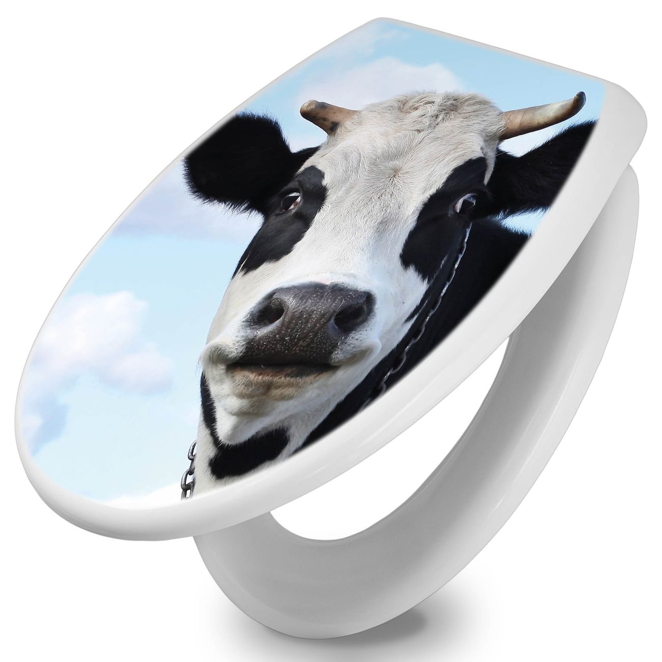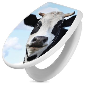 Toilettendeckel weiß mit Absenkautomatik Motiv Muh