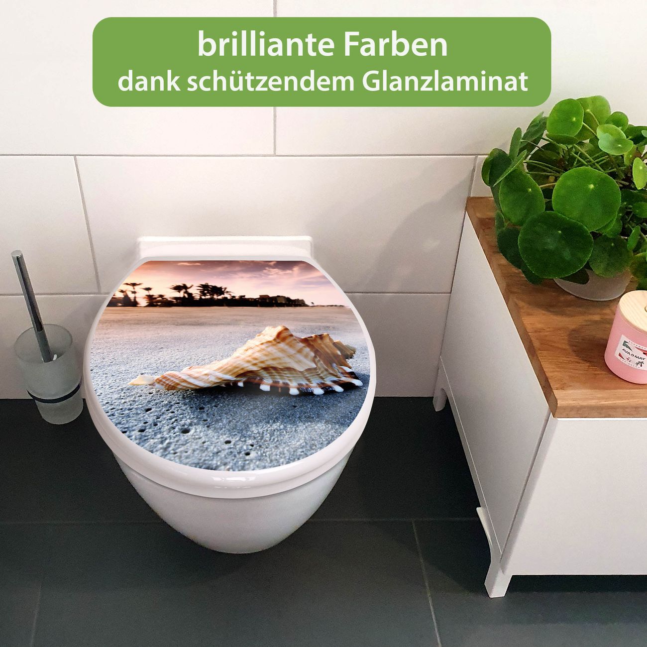 Toilettendeckel weiß mit Absenkautomatik Motiv Muscheln
