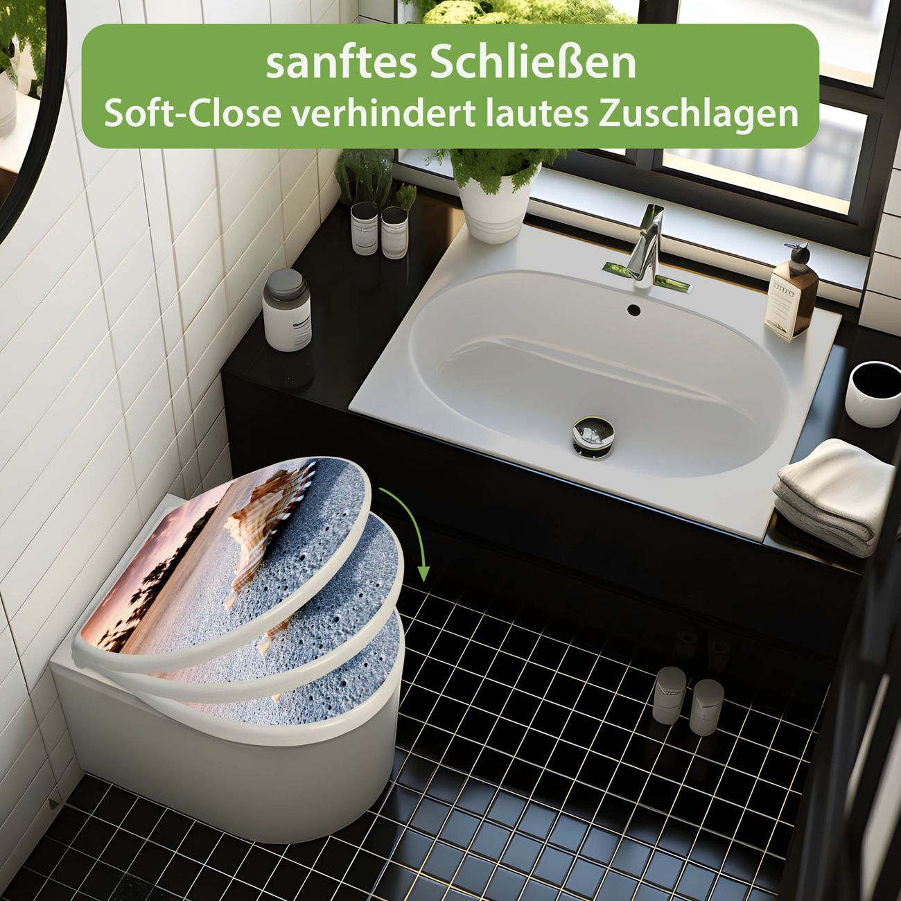 - Material: WC-Sitz und Deckel aus robustem Duroplast