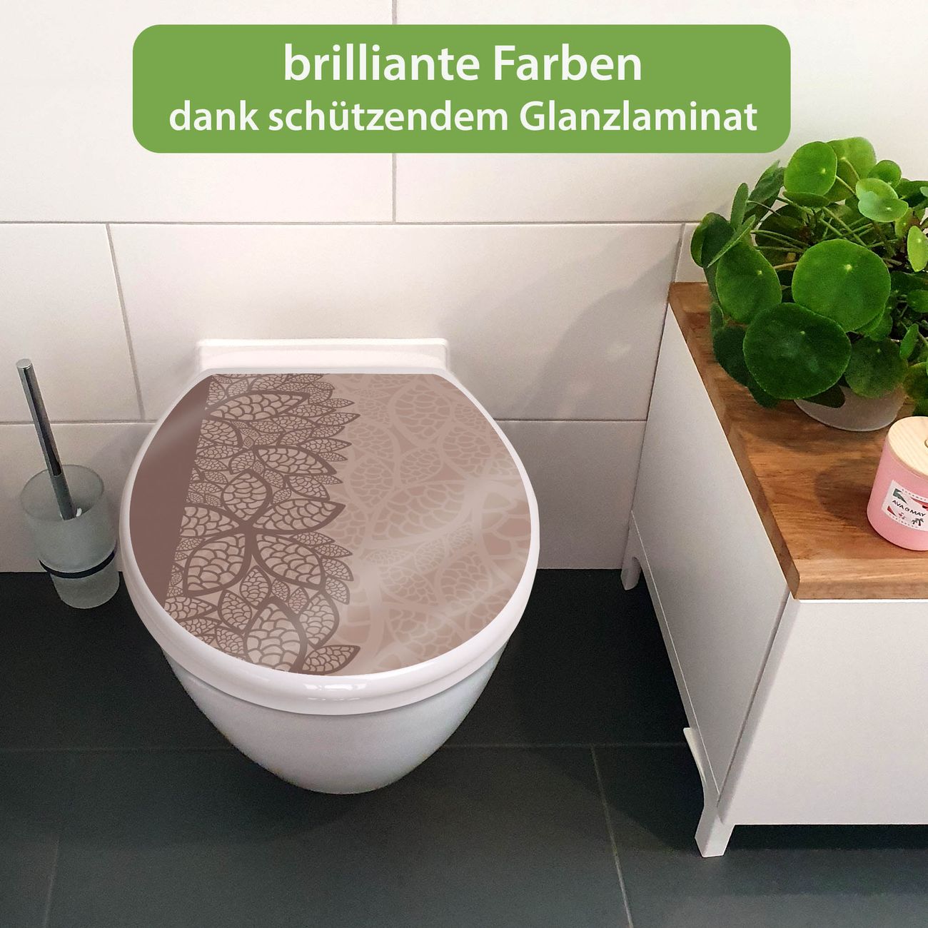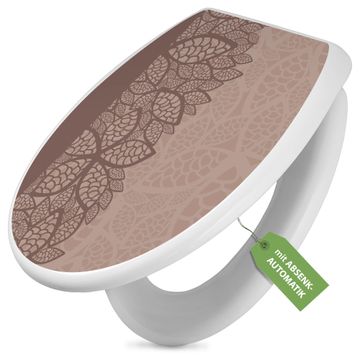 Toilettendeckel weiß mit Absenkautomatik Motiv Muster Blätter