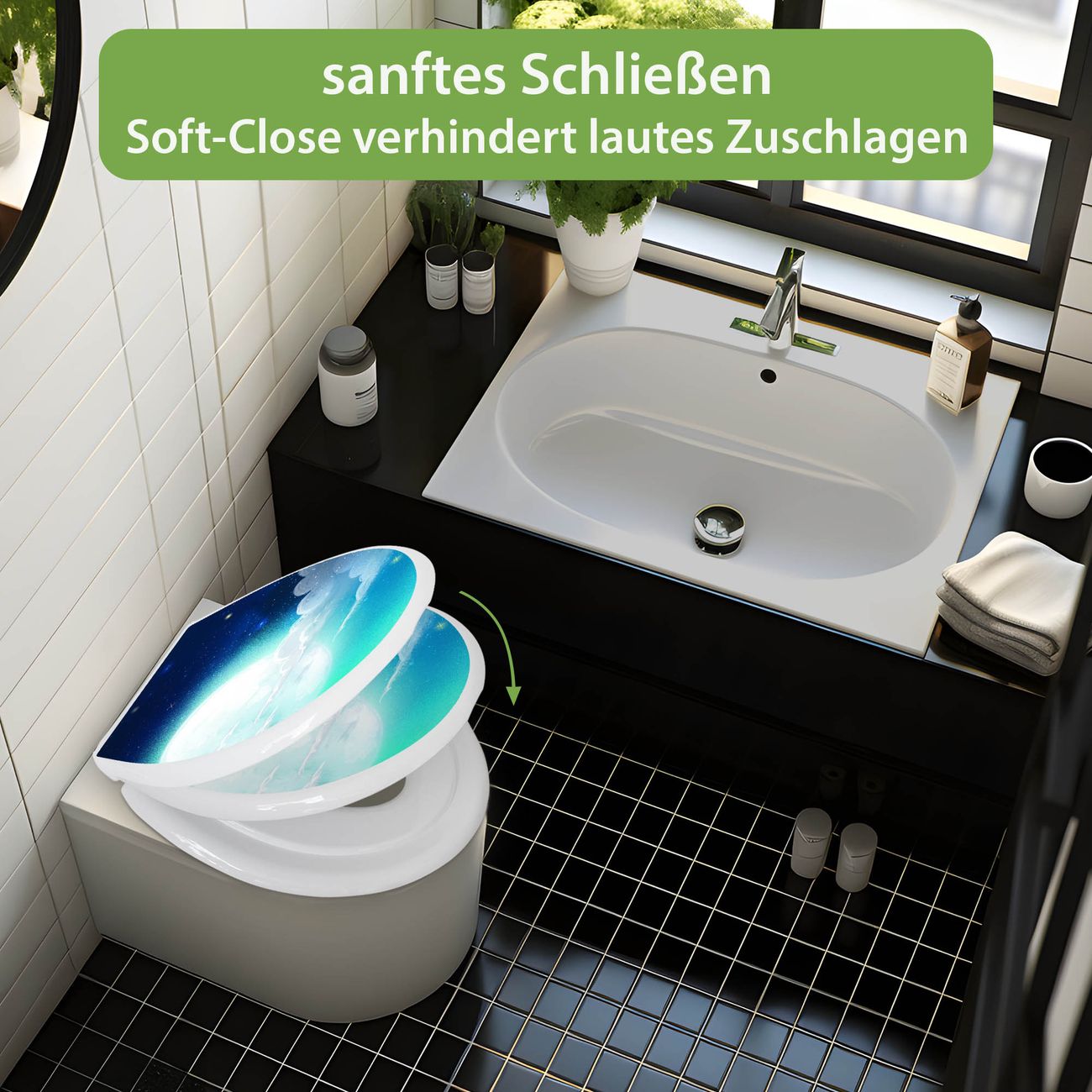 Toilettendeckel weiß mit Absenkautomatik Motiv Nachthimmel 1