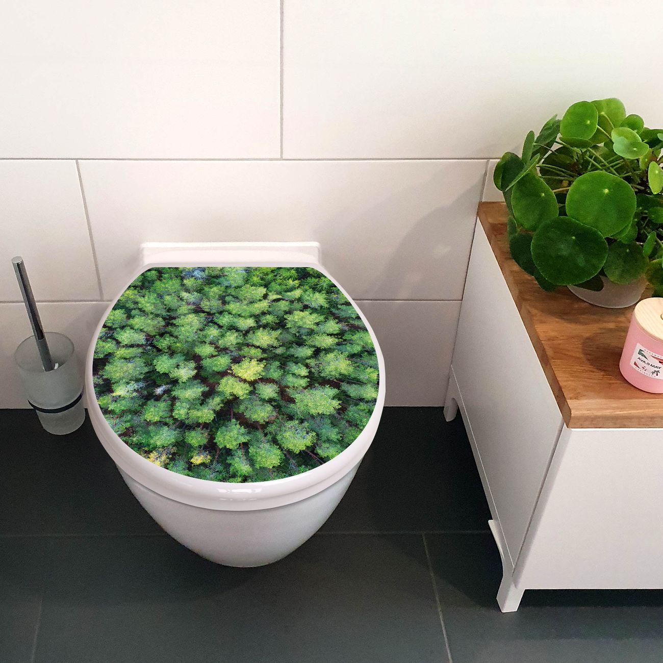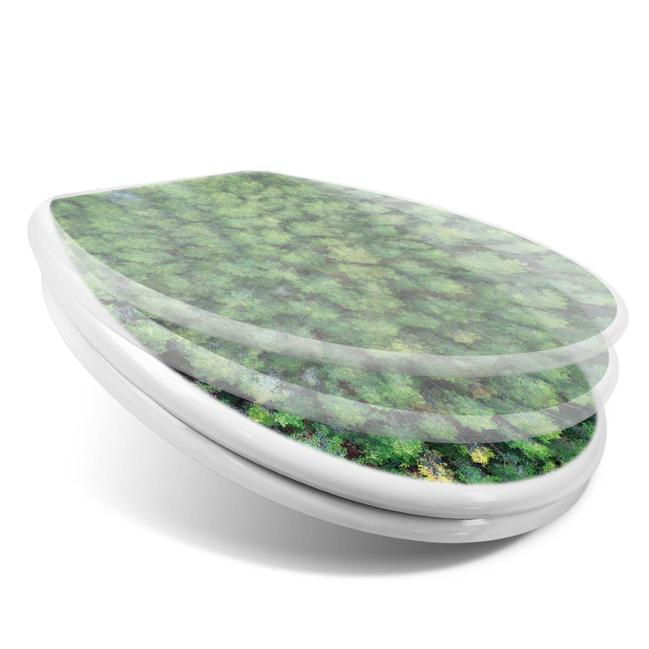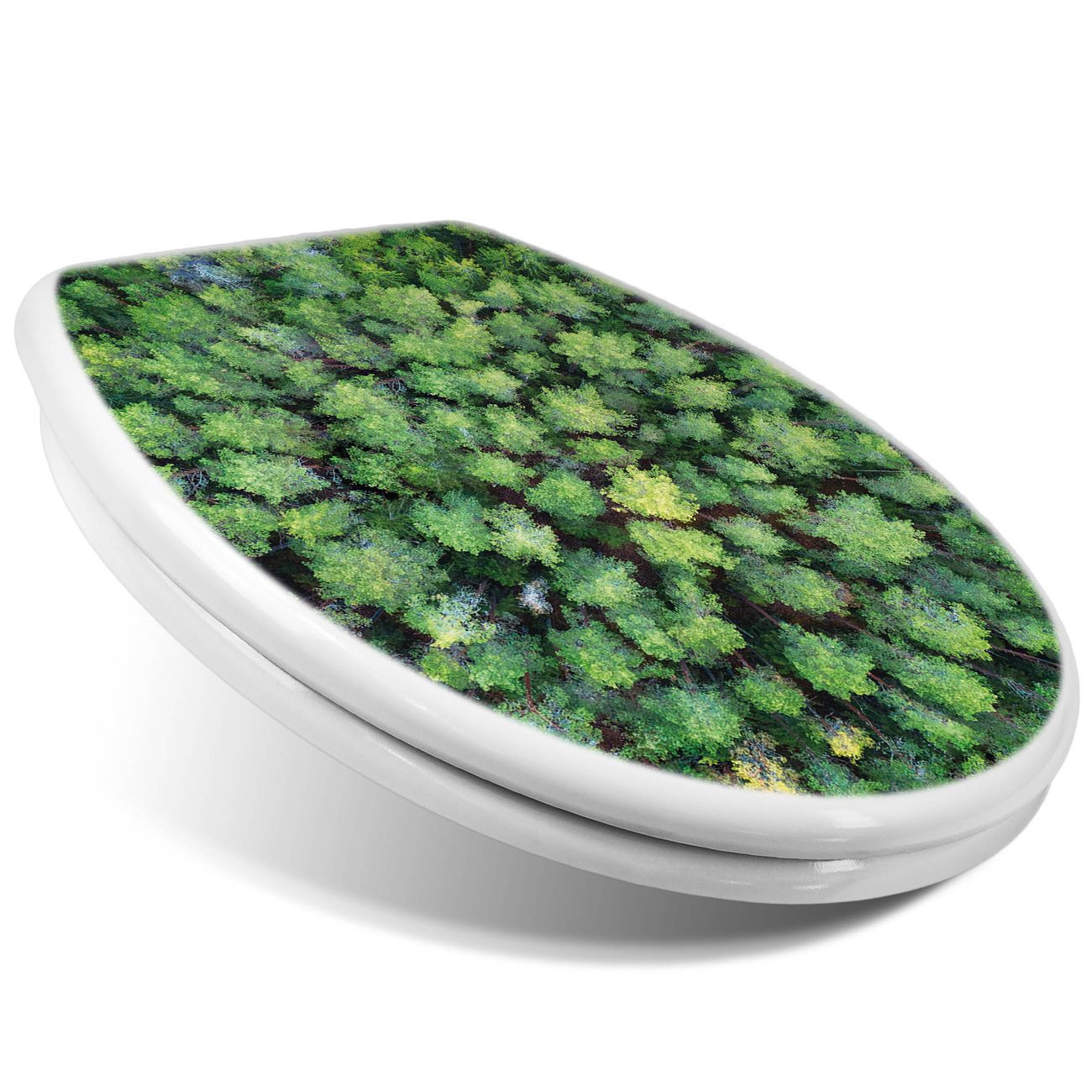 Toilettendeckel weiß mit Absenkautomatik Motiv Nadelwald