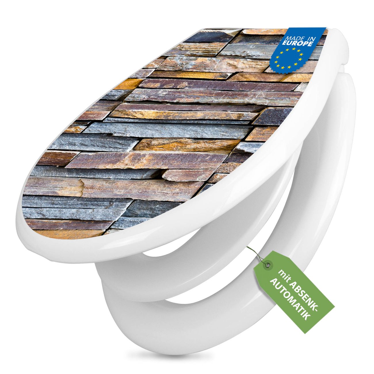 Toilettendeckel weiß mit Absenkautomatik Motiv Naturstein