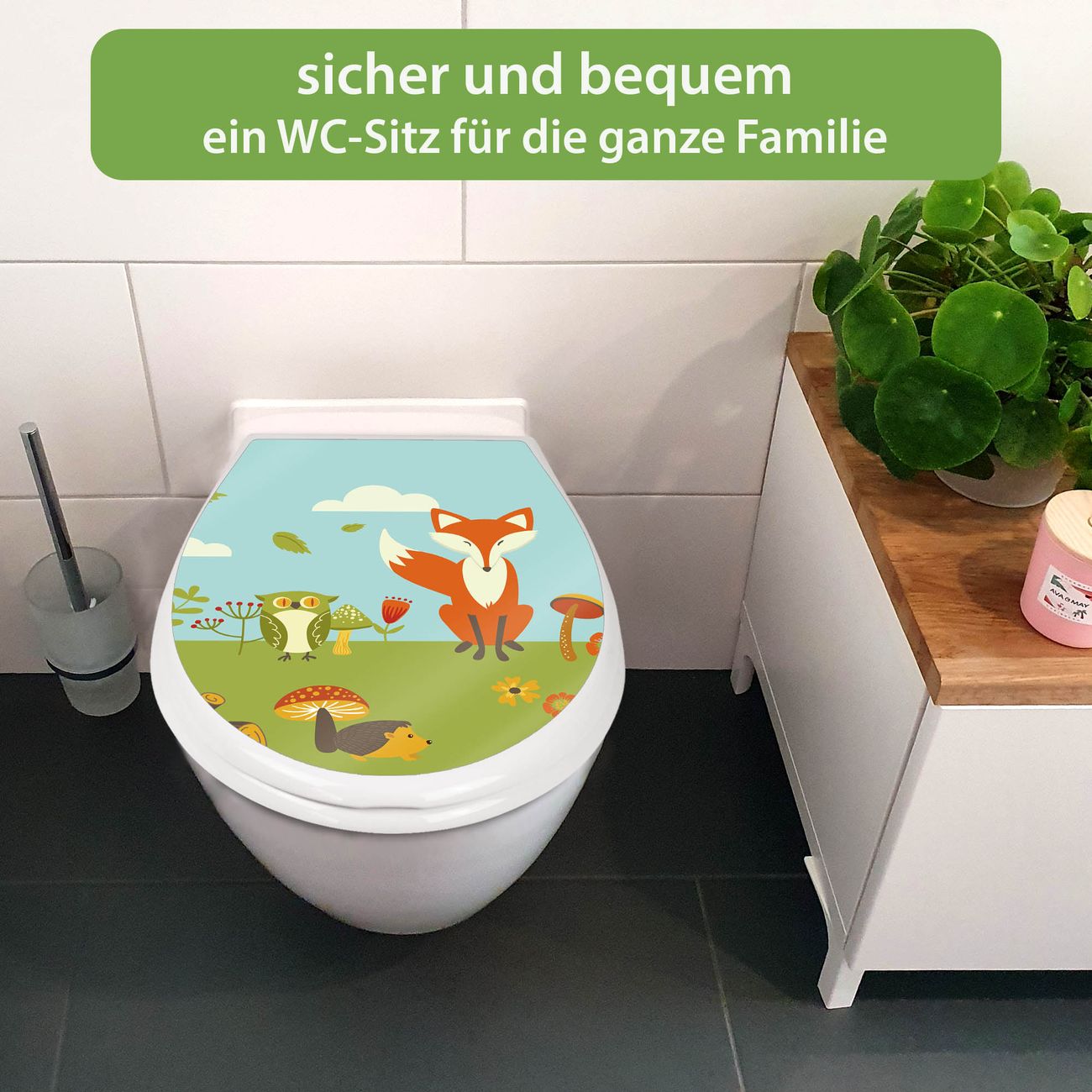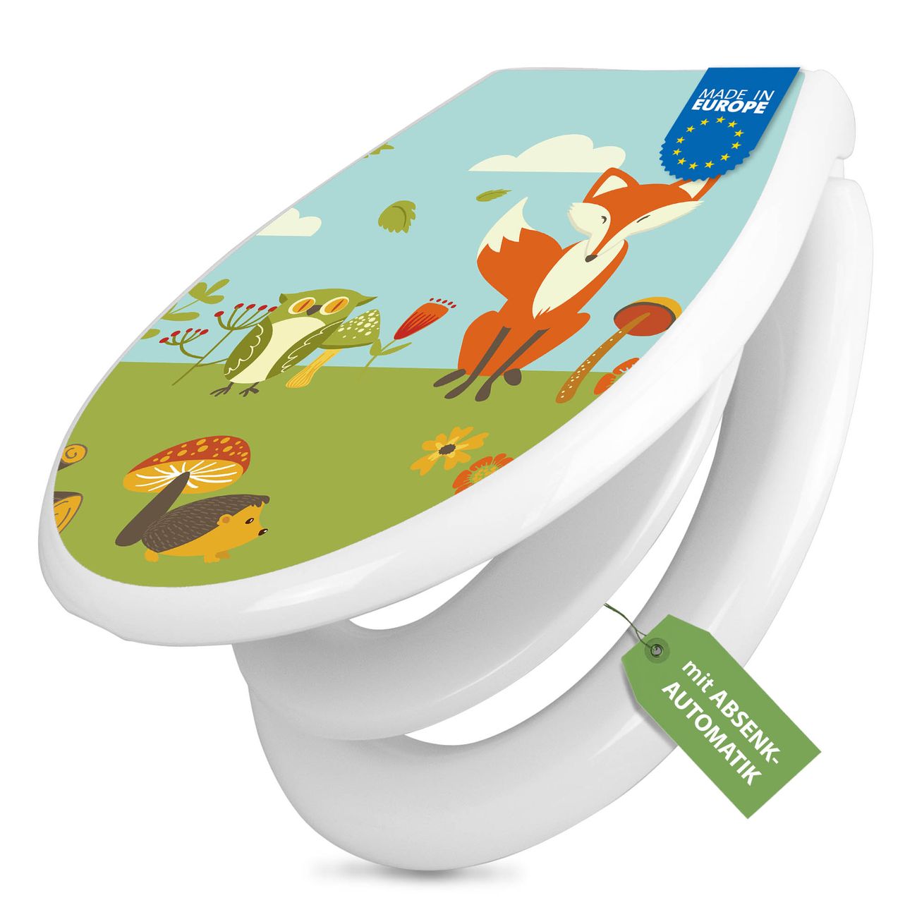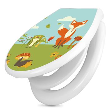 Toilettendeckel weiß mit Absenkautomatik Motiv Neulich Im Wald