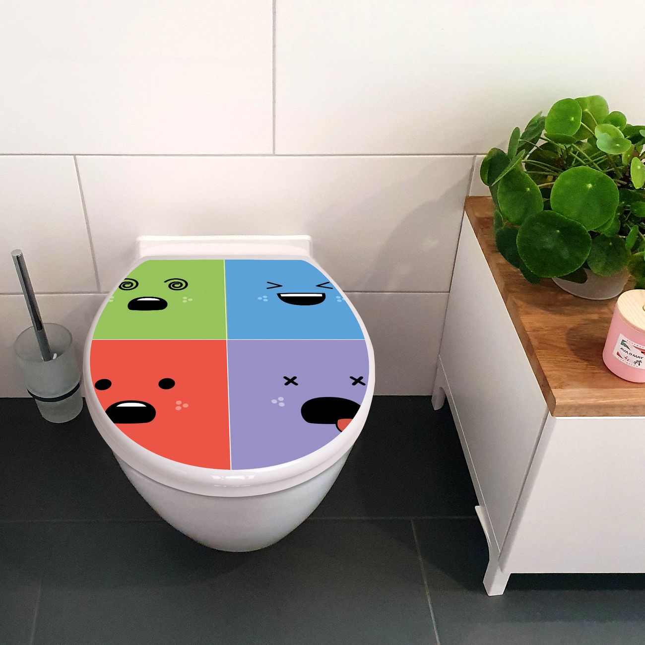 Toilettendeckel weiß mit Absenkautomatik Motiv Neun Keinenasen