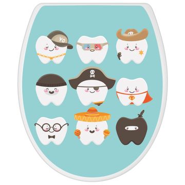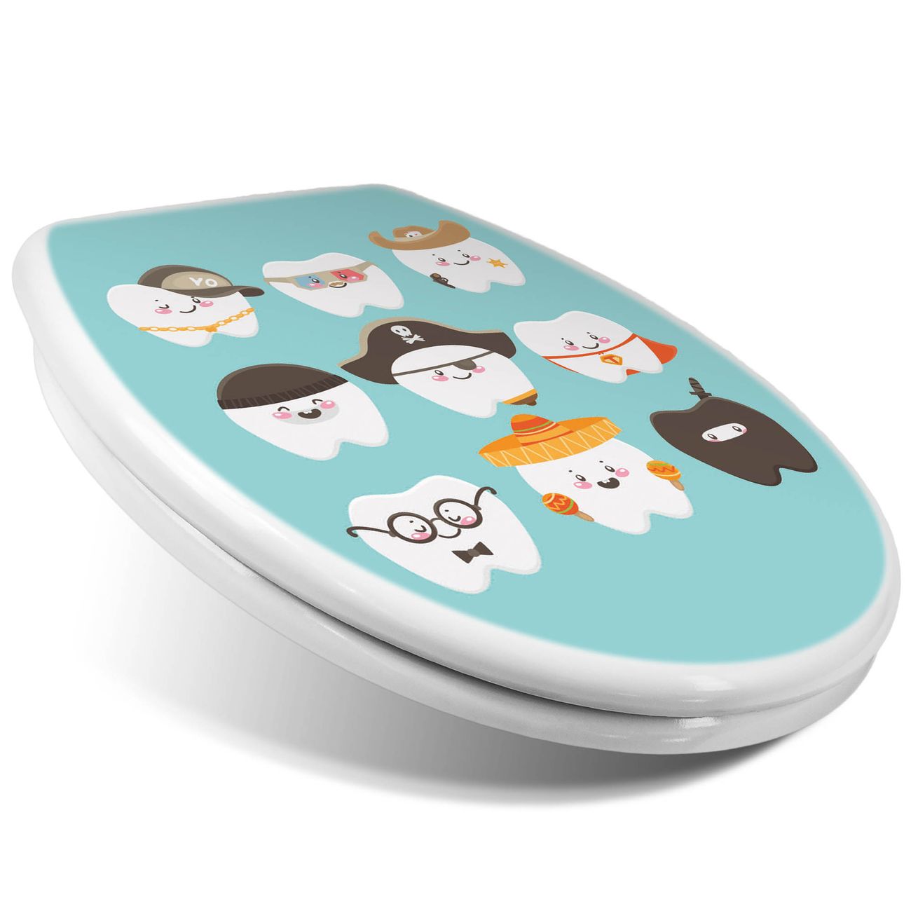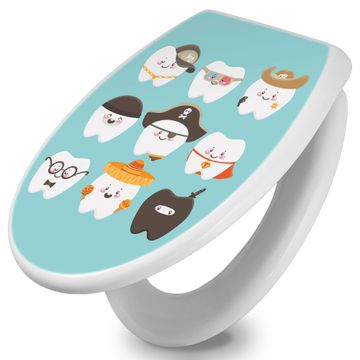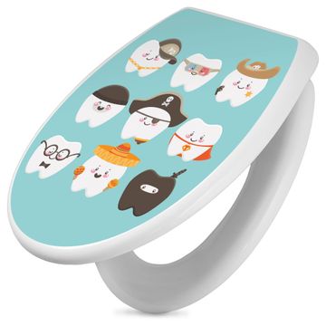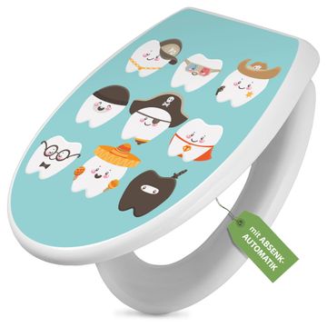 Toilettendeckel weiß mit Absenkautomatik Motiv Neun Zähne