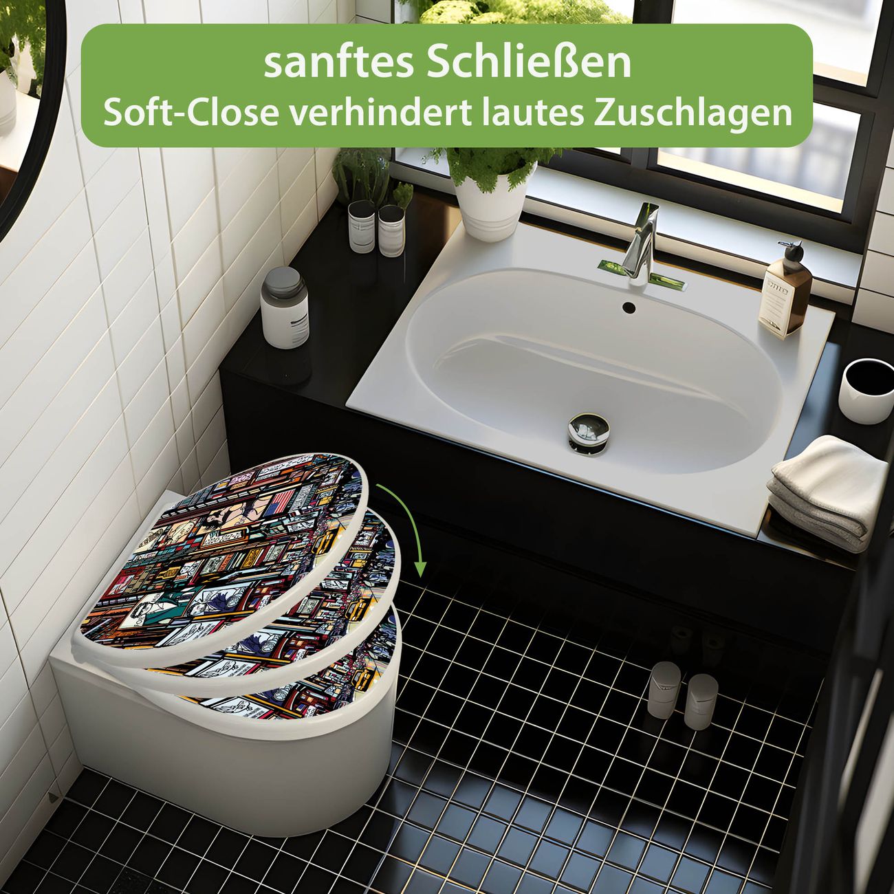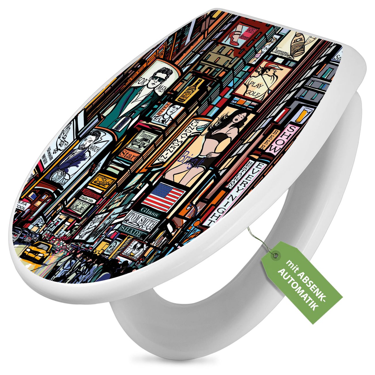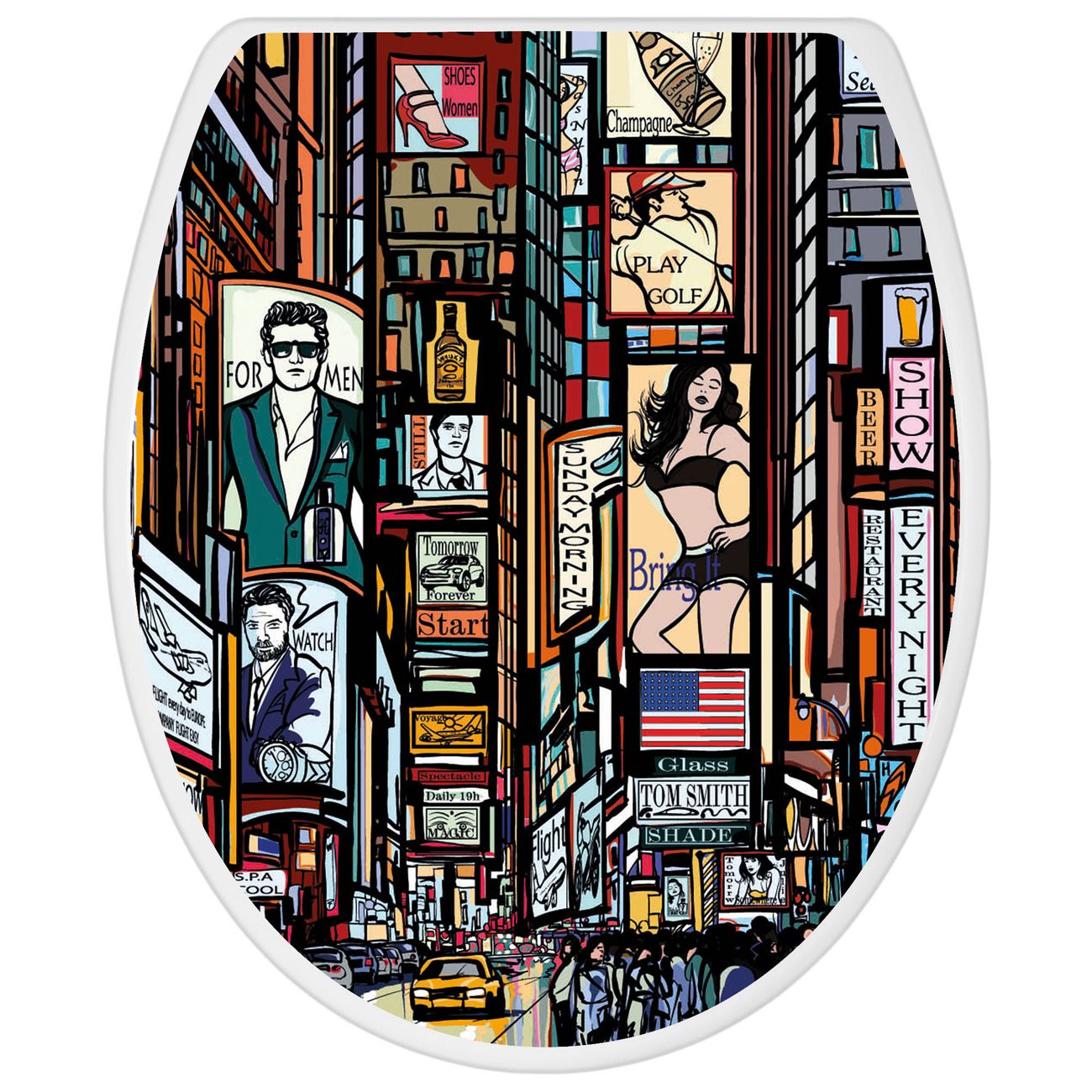 Toilettendeckel weiß mit Absenkautomatik Motiv New York Show